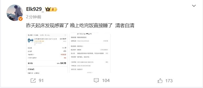 ELK更新微博自证:“昨天感冒,吃完饭直接睡了,清者自清!!”