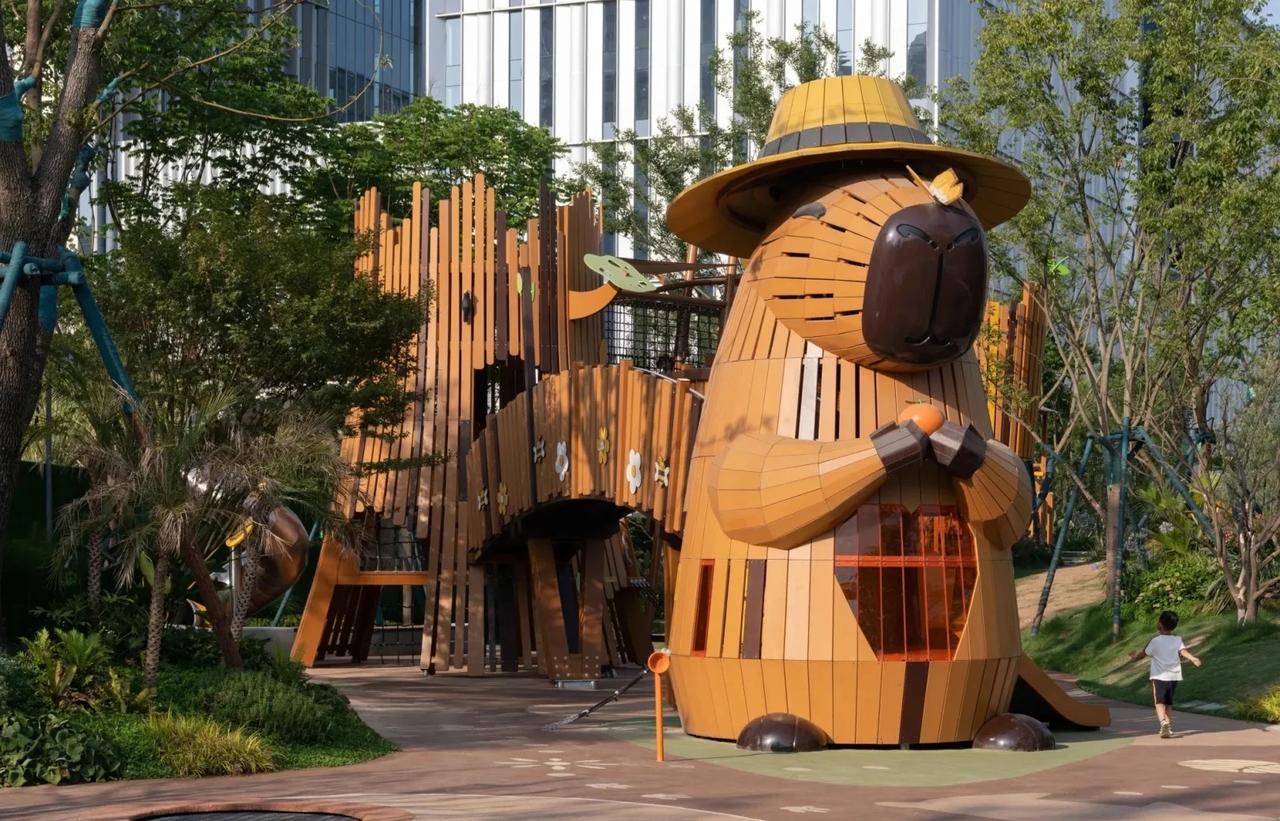 流量 官方大大求流量 薯队长求流量 官方助推 热度 浏览量 礼物季 成长笔记 [害羞]主题故事路线: [蹲后续H][蹲后续H] 近几年,卡皮巴拉(水豚)以超绝的松弛感广受人们喜爱,其卡通形象被用在多种场景中,为快节奏的都市生活带来轻松与抚慰。人居生活的松弛感早已渗透在社会之中,乐园以卡皮巴拉卡通形象自创主题IP,以儿童无动力游乐设施为节点,构建出完整的游乐场景,也是“卡芭卡巴”一家的生活场景。通过以场景营建驱动城市公共空间的打造,乐园迅速集聚人气活力,与街区发展互相促进,助力街区的城园共融与精明增长。乐园诞生之后,迅速吸引了家长和孩子们的注意力,并与招商花园城产生联动,轻松享受游憩期间的餐饮服务。通过与周边商业、居住功能完美融合,乐园的“空降”似乎自然而然,既丰富了片区公园绿地的运营主题,也提升了街区的整体意象。@崇盛&未名设计WMLA [害羞][害羞]游玩设施: 攀爬网、钻洞、小土坡、钻网、传声筒、休息小屋 、网绳栈道、现代树屋、木质攀爬、秋千、益智玩具、攀岩墙、吊环、休息区。 无动力亲子乐园 网红游乐设备 游乐设备厂家 儿童游乐设备 游乐设备 网红游乐设备 无动力游乐设备 无动力游乐设备厂家 景区游乐设备 非标定制游乐设备 无动力 无动力游乐设备 无动力游乐设备厂家 无动力亲子乐园 幼儿园 幼儿园设计 儿童乐园 户外非标游乐设备 非标游乐设备 非标游乐设备