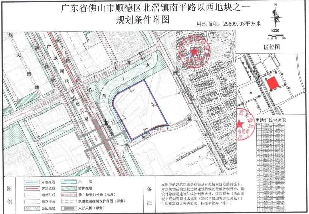 佛山造获悉,11月14日,佛山市顺德区涛骏房产开发有限公司成功竞得位于碧桂园总部附近的一块约2.95万平方米的土地,成交总价高达29509万元,计算后得出楼面地价约为每平方米4000元。该地块地理位置优越,从地图上清晰可见,它坐落于佛山市顺德区北滘碧江板块的核心区域,且与碧桂园总部仅一路之隔,地理位置十分显赫。|宗地位置示意图该地块占地总面积为29509.03平方米,规划条件清晰明了:容积率上限设定为2.5,确保建筑密度的合理控制;绿地率则不低于30%,旨在营造绿色生态的居住环境,建筑高度限制在110米以内,以保障城市天际线的和谐。