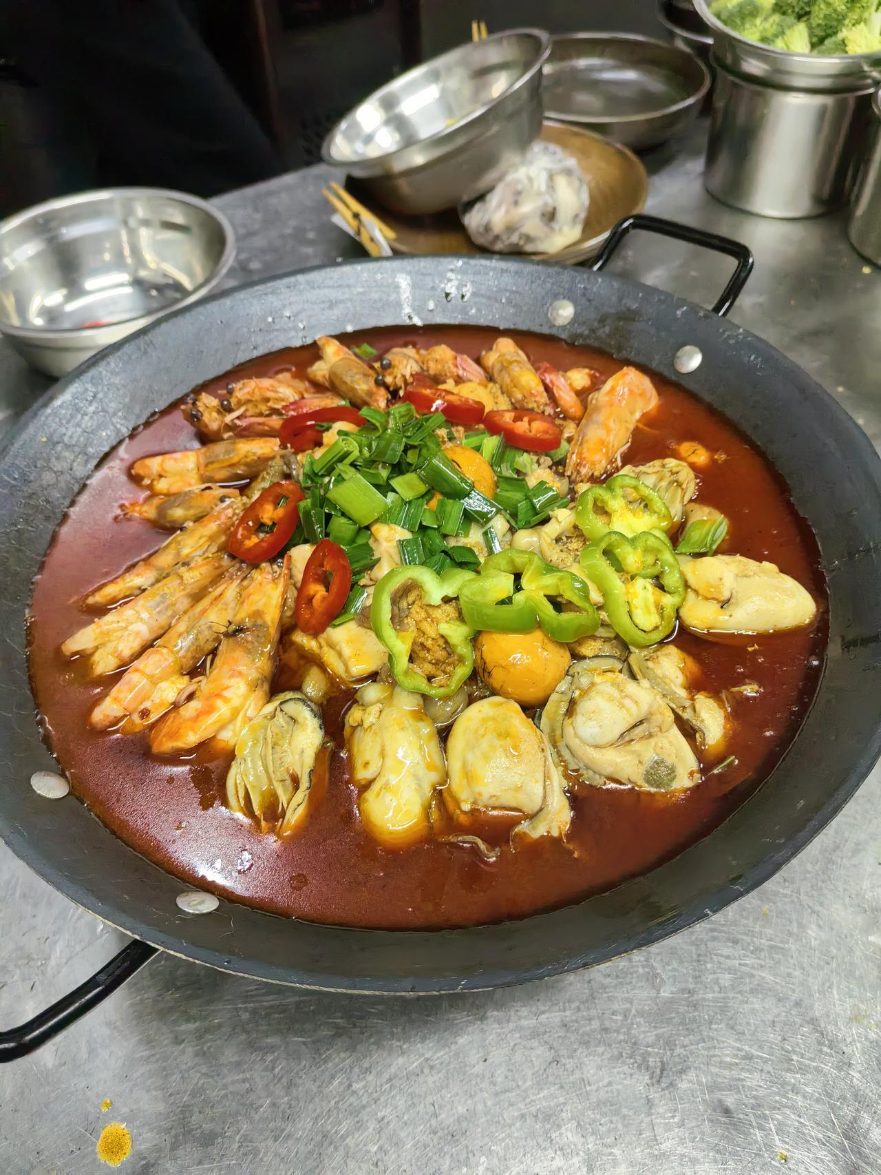 天一冷,后厨的吊锅就该登场了!作为掌勺多年的厨师,今天刚试完两道秋冬限定吊锅,鲜得我自己先忍不住多吃了两碗饭,这热乎乎的滋味,端上桌绝对能让食客暖到心尖儿。 先夸夸这道「四腊吊锅」,秋冬吃腊味最是解馋。选的都是晒足日晒的好料:带皮腊肉蒸得油润透亮,肥油入口即化不腻喉;广式腊肠甜香渗进肌理,咬开还会爆汁;腊鸡提前用温水泡去咸涩,炖得肉质酥软,连骨头都能吮出鲜;腊鱼煎至金黄再下锅,外皮脆内里嫩。锅底垫上吸味的萝卜和腐竹,淋上用高汤调的酱汁,开小火慢慢咕嘟,热气裹着腊香飘满厨房,吃的时候配碗白米饭,油脂香混着酱香,一口就上头。 另一道「鱼杂基围虾生蚝吊锅」更是鲜到犯规!鱼杂提前用料酒去腥,炒出油脂后加高汤煮沸;基围虾剪去虾须,下锅煮到变红卷曲;生蚝选的是鲜活的,开水烫至半开就下锅,保持嫩滑口感。吊锅里加了姜片、葱段和少许辣椒提味,汤汁熬得奶白浓稠,鱼杂软嫩不腥,基围虾鲜弹入味,生蚝咬开满是汁水,连喝三勺汤都觉得不够,暖乎乎的一碗下肚,浑身的寒气都散了。 试菜时,后厨的同事们围着吊锅抢着尝,都说这两道菜冬天卖肯定火。其实冬天的吊锅不用复杂技法,只要食材新鲜、火候到位,让热气裹着鲜味钻进胃里,就是最抚人心的滋味。接下来就等着把它们更进菜谱,让食客们也尝尝这冬天专属的烟火气!