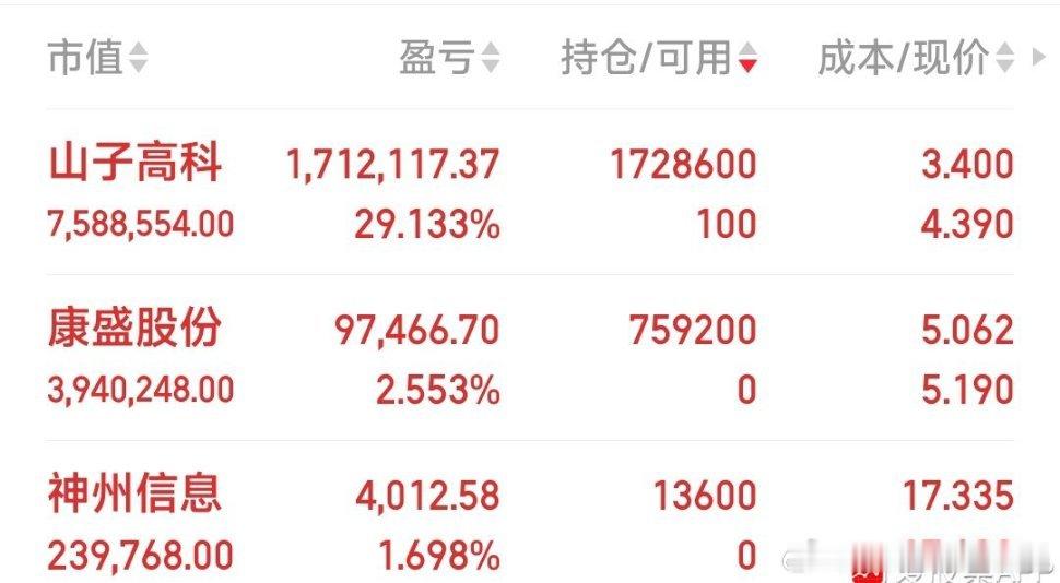 1,今天已建仓三牛:山子高科,康盛股份,神州信息。2,今天己出局标准股份,电子城