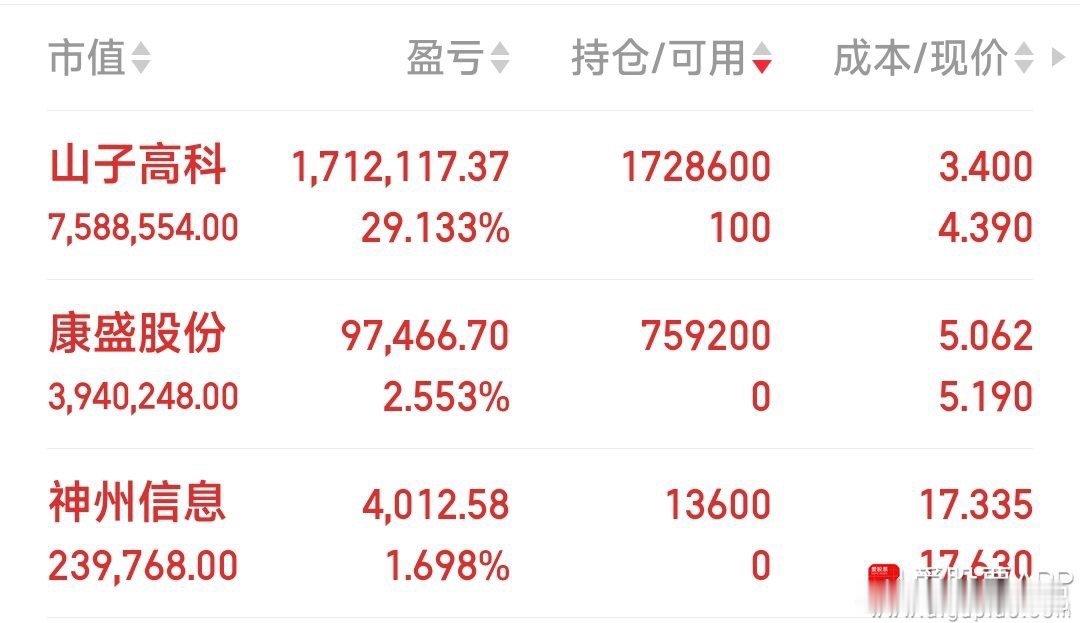 【今天操作完毕】今天建仓了神州信息,康盛股份,山子高科,科力远。标准股份做了个T