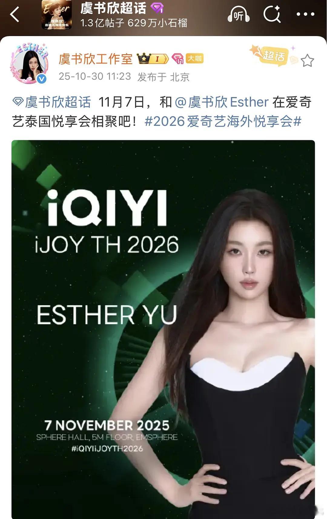 虞书欣11.7爱奇艺泰国悦享会官宣[来]