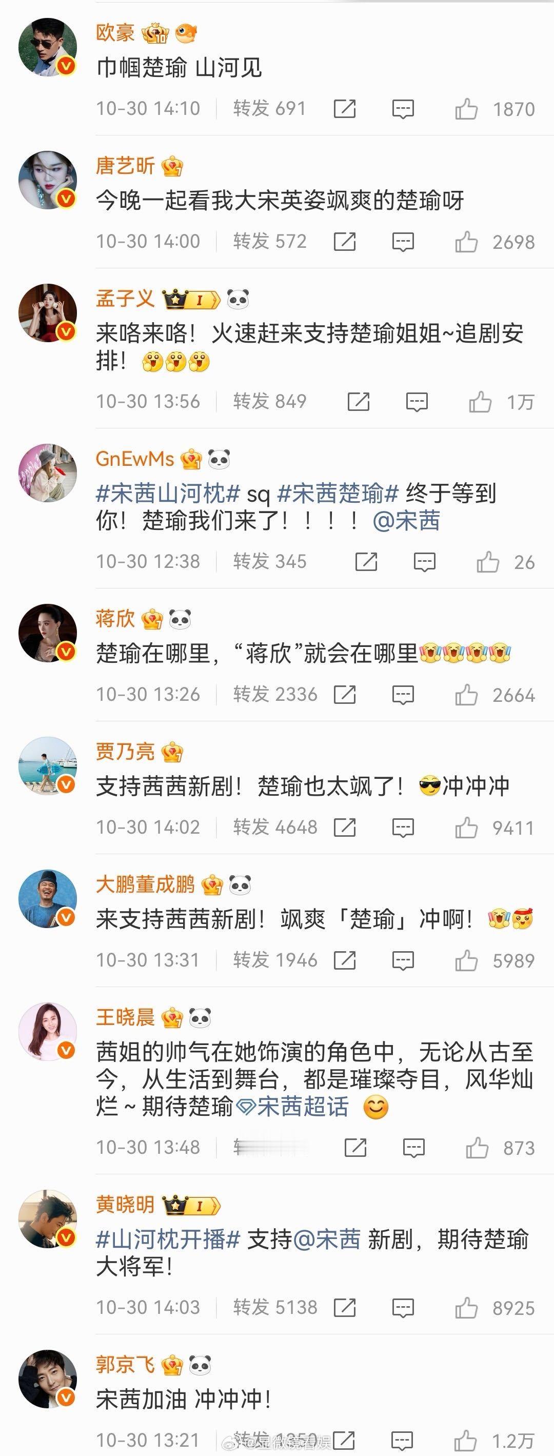 宋茜微博转发区 谁敢看微博转发区,简直太豪华了!!!!大半个娱乐圈的人都来给姐打call了,人缘真的很好了吧!一起来看这个山河枕 楚瑜,今晚不见不散!宋茜[超话]