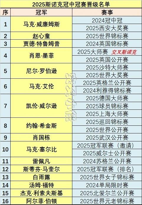 斯诺克:2025斯诺克冠中冠最终参赛名单出炉! 2025冠中冠参赛名单出炉,最终奥沙利文没有凭借世界排名获得参赛资格,丁俊晖也无缘以替补身份参赛。元老世锦赛冠军伯顿获得最后一个参赛席位。 本届冠中冠有赵心童、肖国栋、雷佩凡和白雨露四位中国选手参赛,数量创历史新高。 比赛日期:2025年11月10日至16日13 举办场馆:英国莱斯特 马蒂奥利竞技场(首次在此举办) 卫冕冠军:马克·威廉姆斯(2024年决赛击败肖国栋夺冠) 总奖金:44万英镑,冠军独享15万英镑,首轮出局选手也可获1.25万英镑。