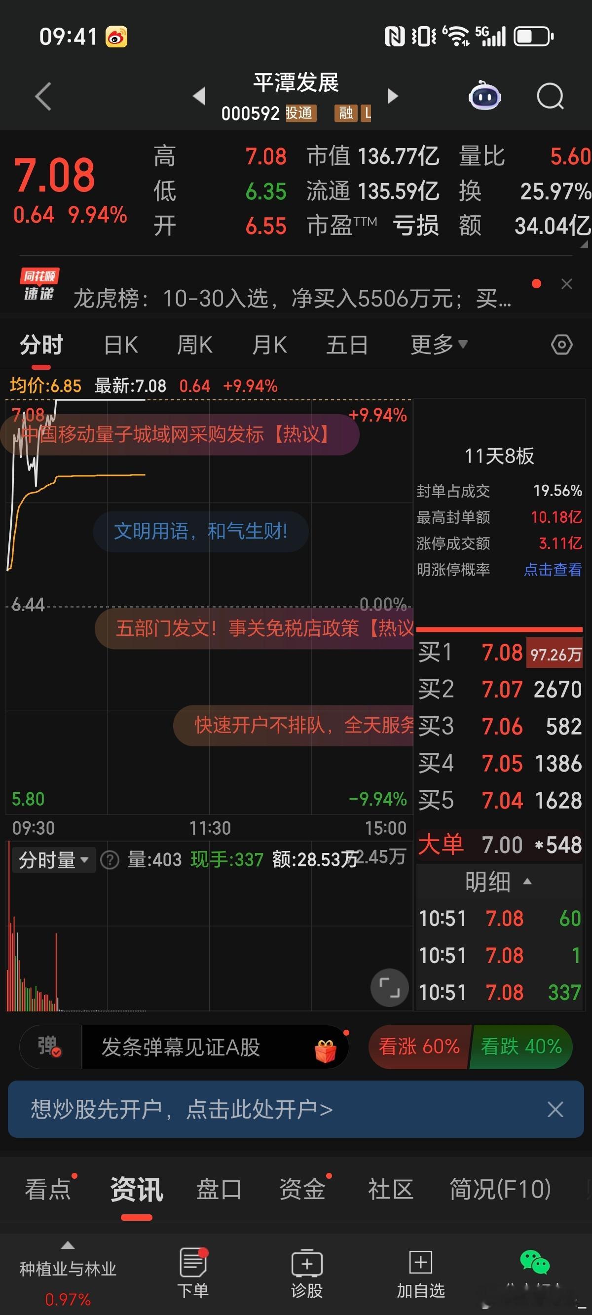 早盘分享平潭发展000592收货涨停!要合作私信888!