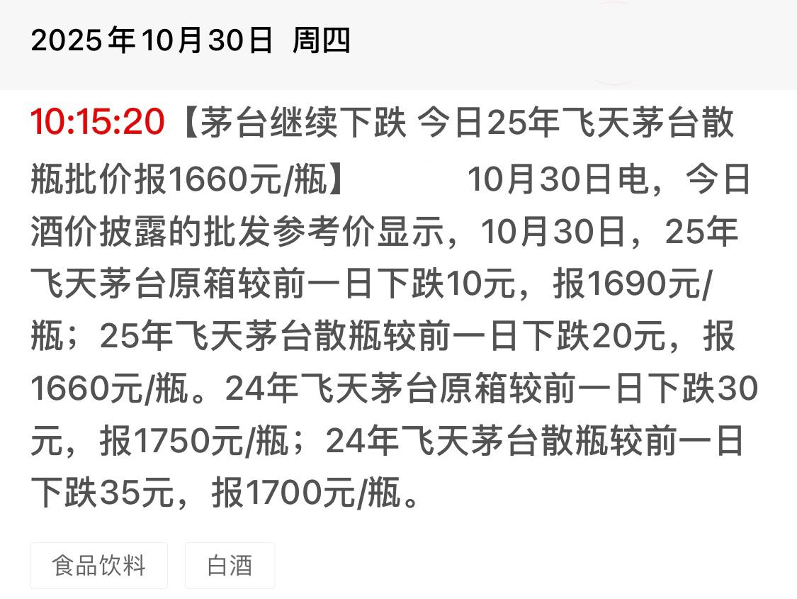 太惨了,白酒行业集体“暴雷” ~~~~~ 2025年10月31日,是股票市场