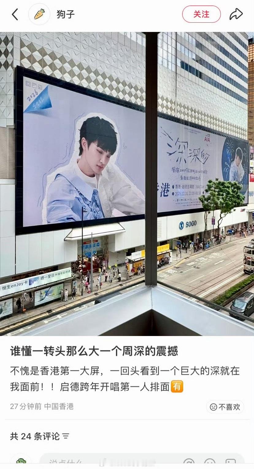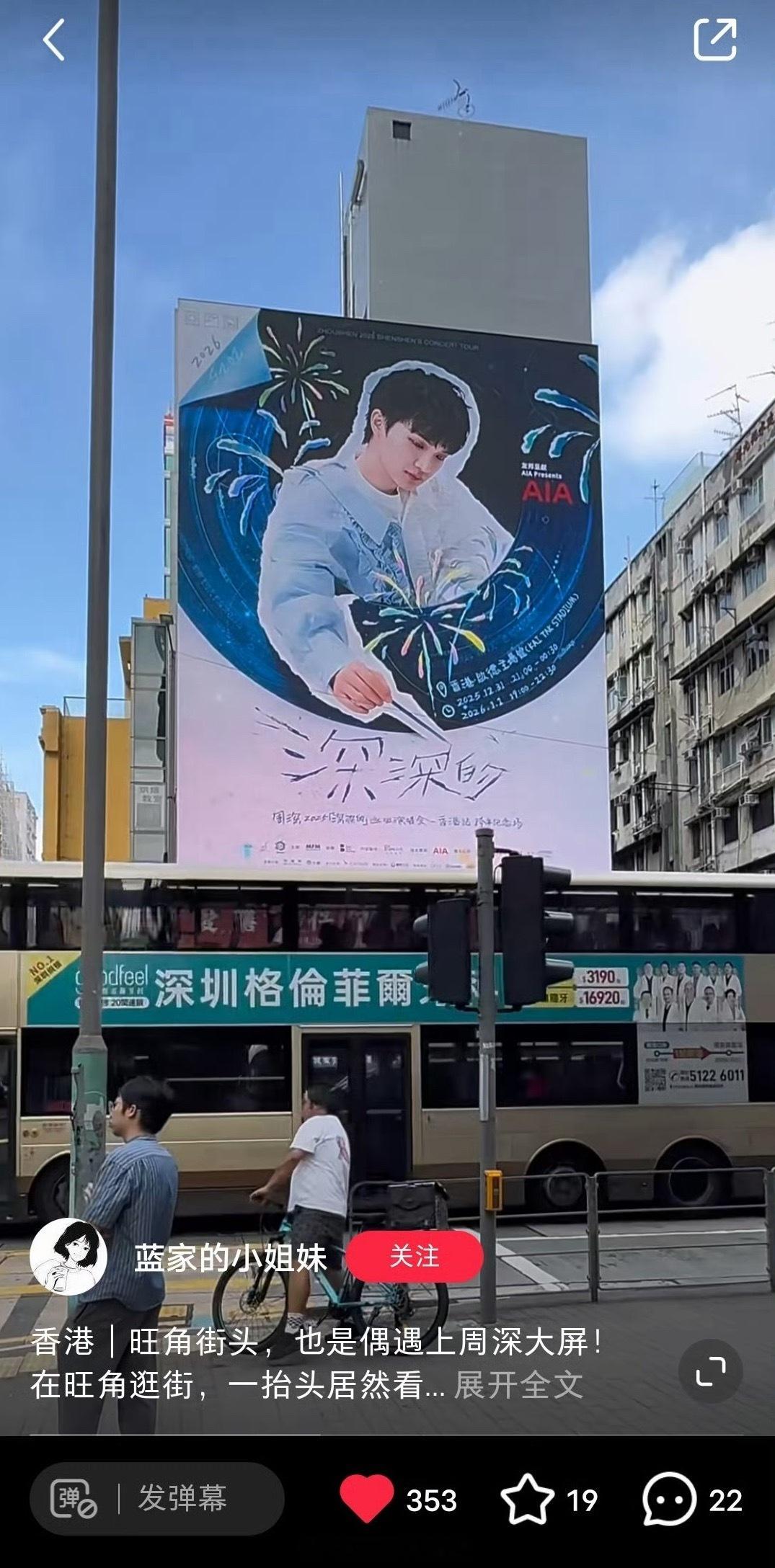 刚官宣不久 ,香港街头就全是周深了,启德跨年开唱第一人排面🈶
