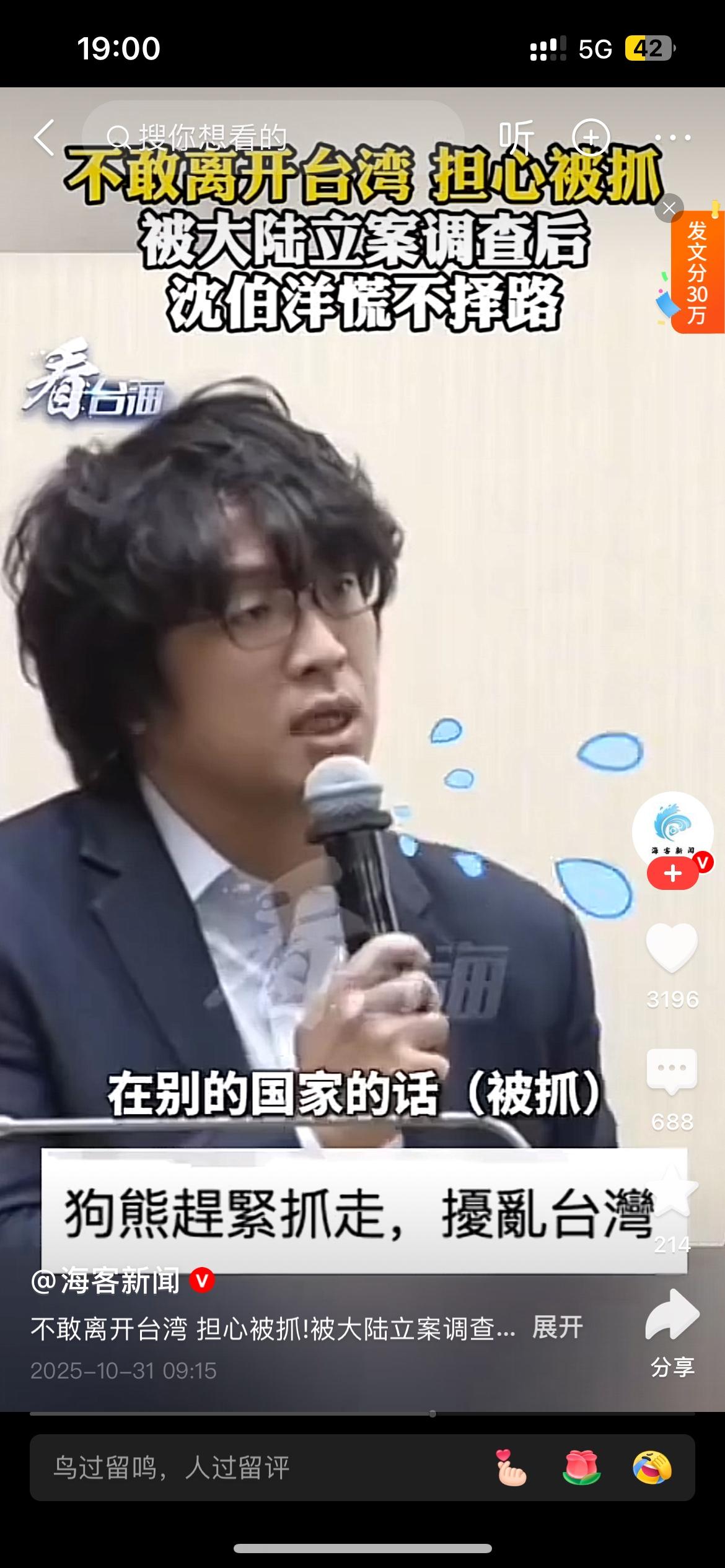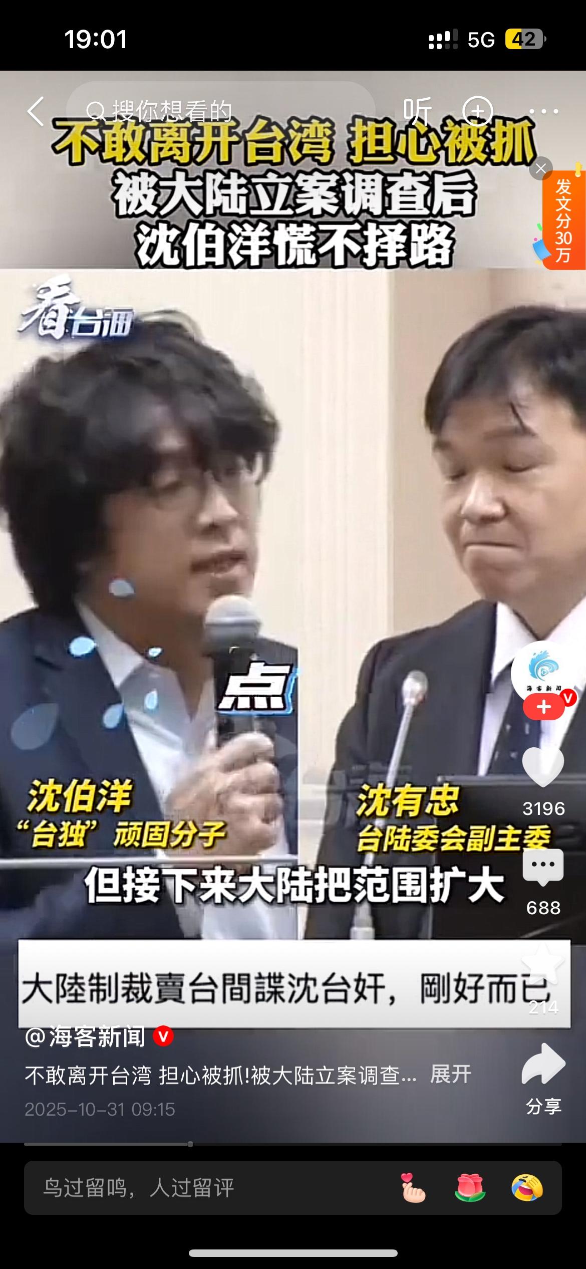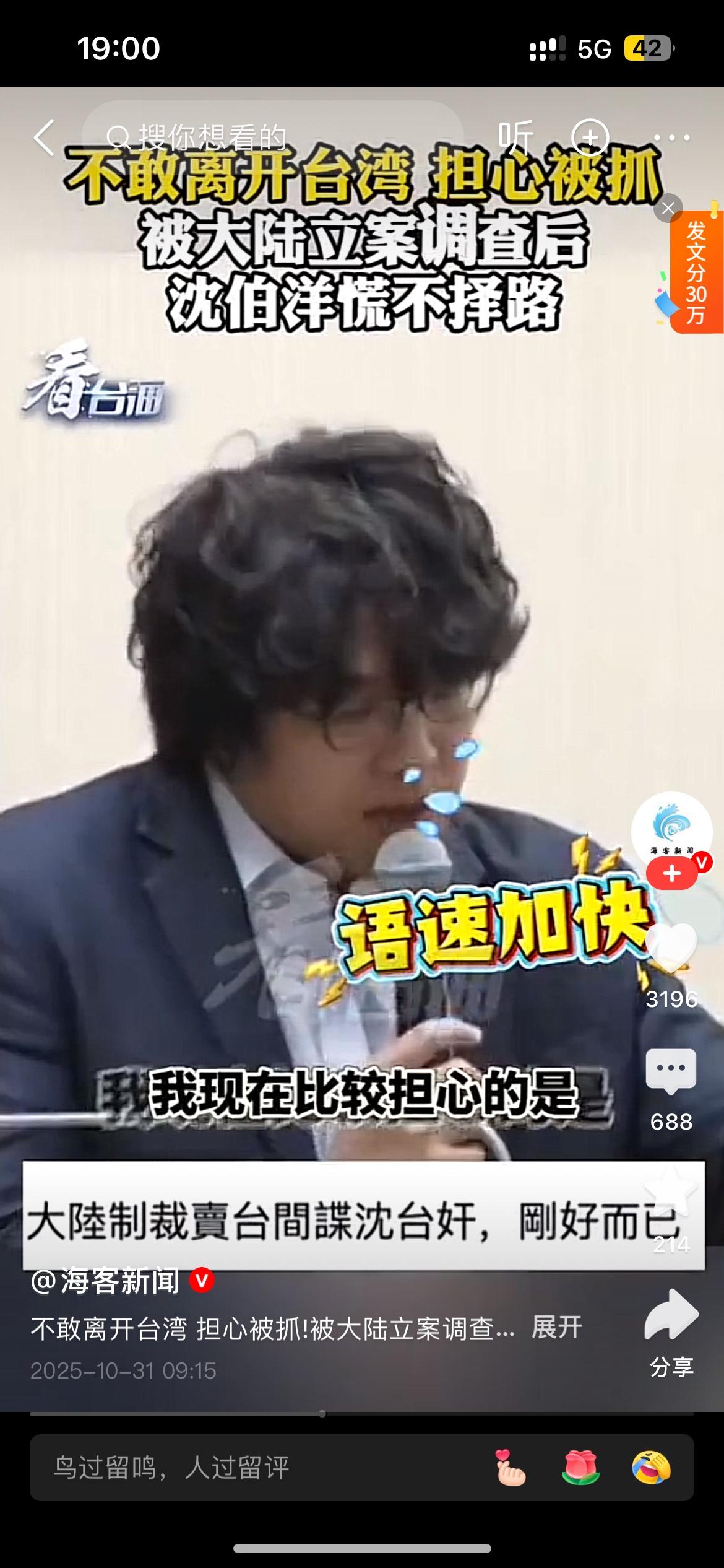 “台独”顽固分子沈伯洋慌了。在大陆对于惩戒“台独”的措施,其被大陆相关部门立案侦查,其害怕自己在别的国家被抓,而问询台湾相关部门。 然而台湾相关部门的回答,让这位“台独”顽固分子心凉半截,原来台湾相关部门仅是提醒其注意相关风险,必须要更加谨慎! 台独分子真是曾经自己跳的有多高,今天就会自己跌的有越狠!