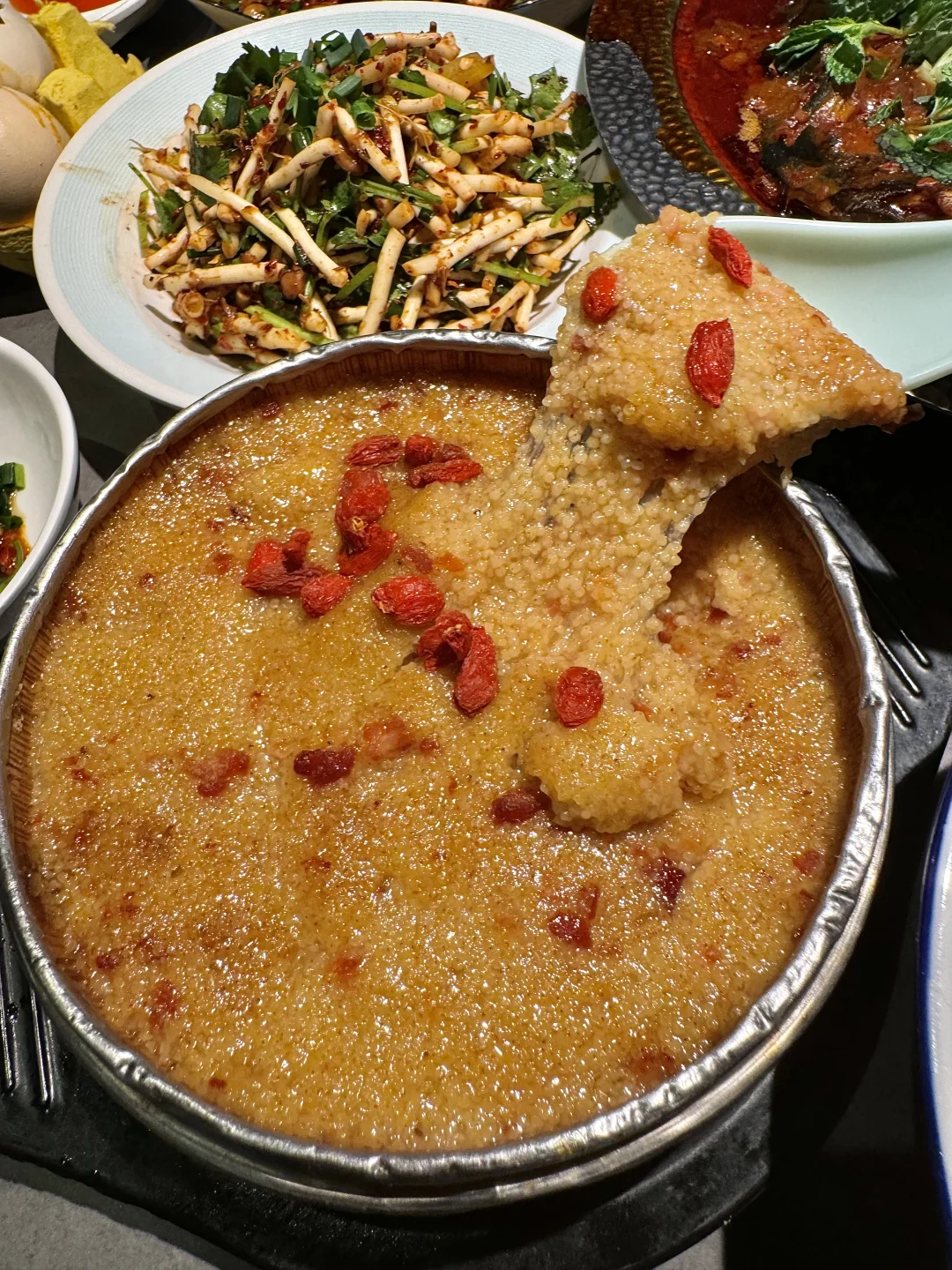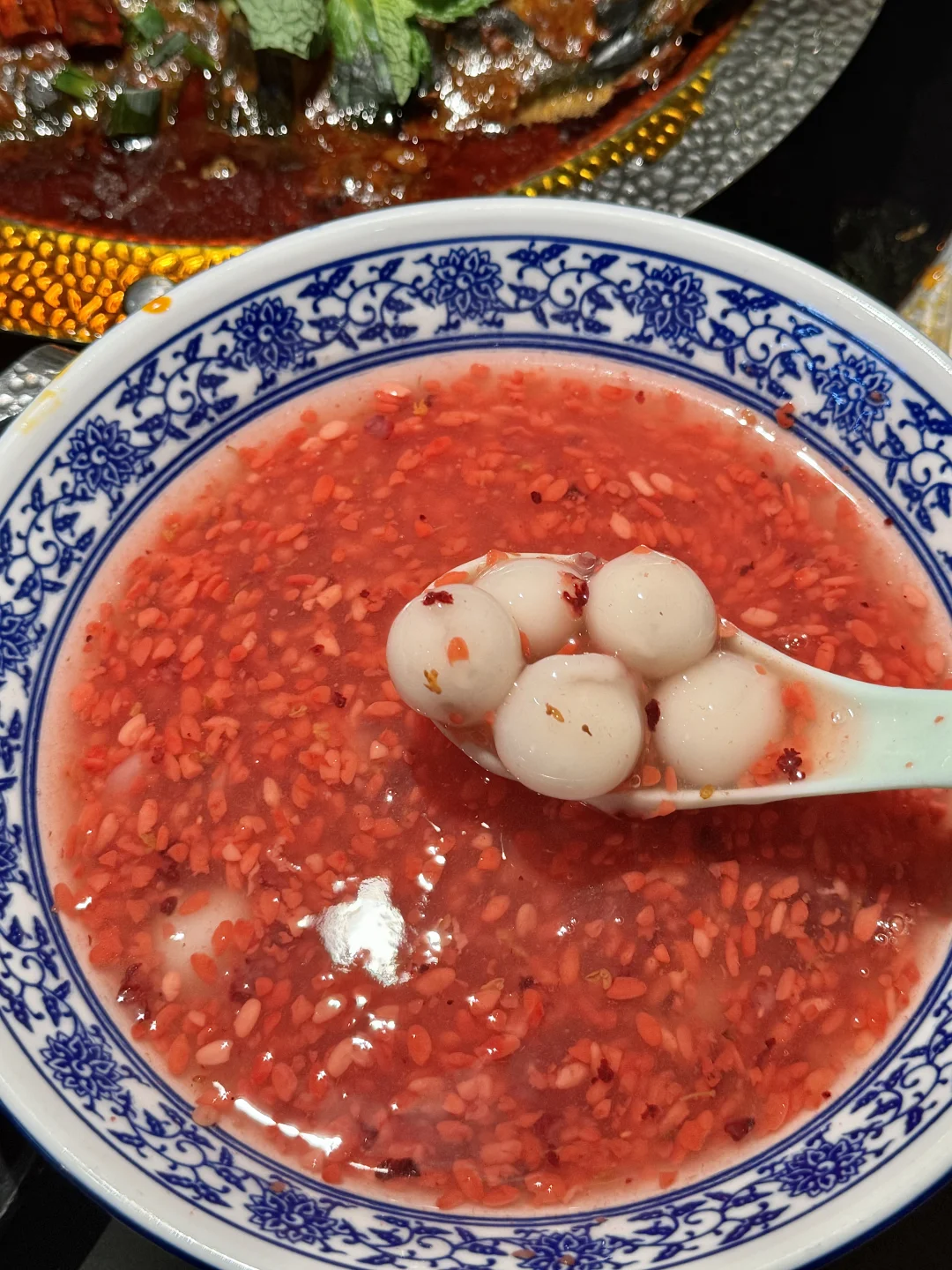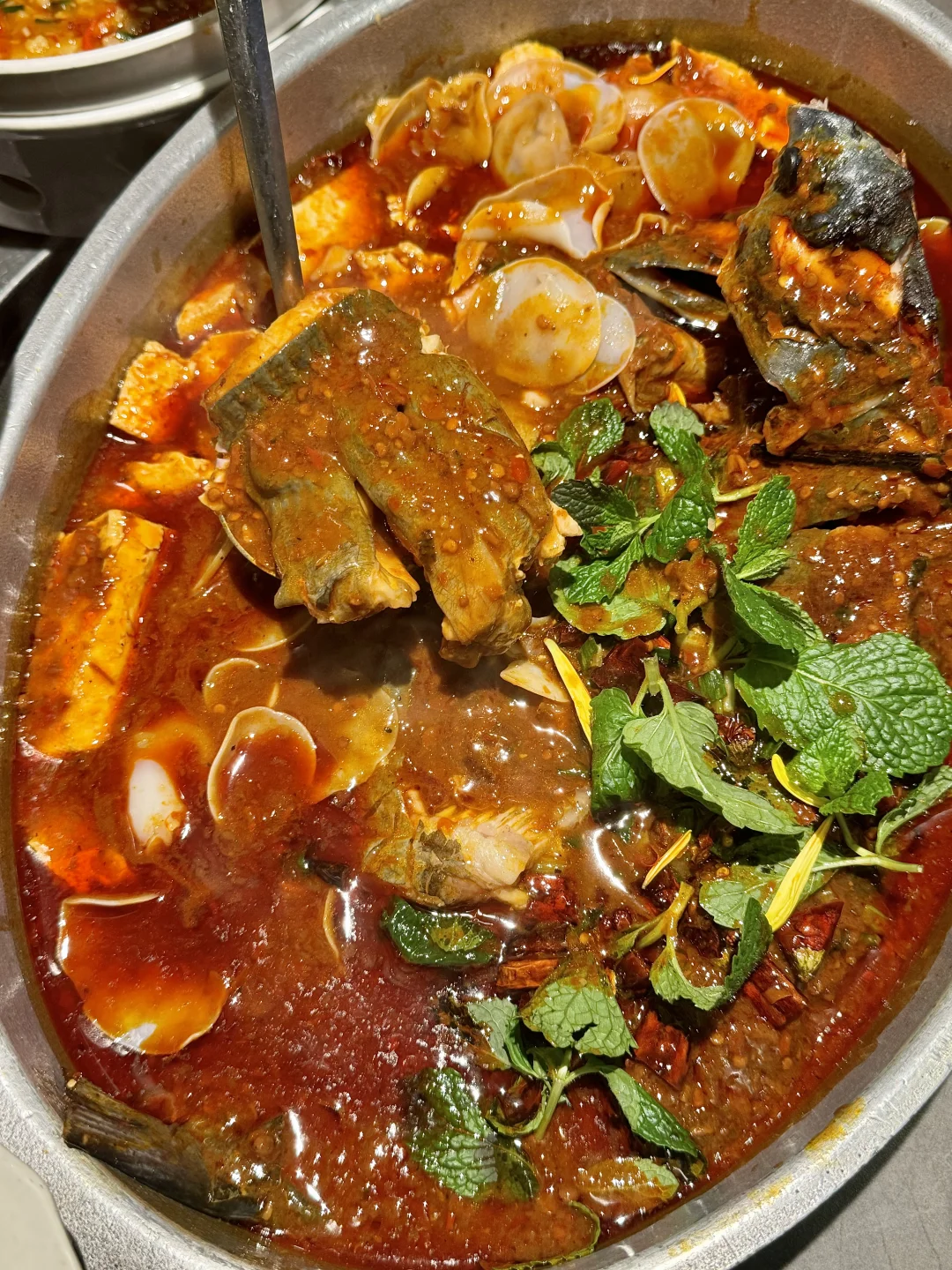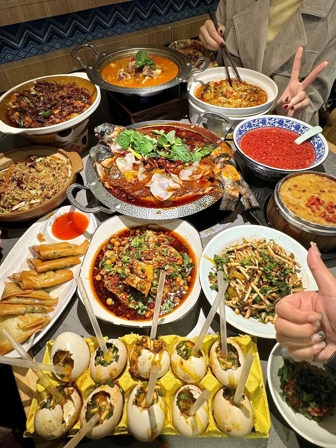 我和好朋友愿意3天吃9顿的一家,尊滴好好次[色色R] 头一回看见这种烤鸡蛋!用吸管吸着吃!滑嫩入味,吃完了还想吃~ 还有烤鱼~鱼肉好细嫩好鲜~浸在汤汁里!尊的很麻很辣吼吼吃!!贼香!!