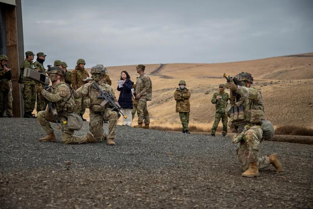 美国推销自己装备有一套手法。 2025年10月28日,星期一,一名美军士兵在华盛顿州亚基马训练中心向来自日本陆上自卫队第22快速部署团的士兵展示反无人机设备的操作。此次训练交流使合作国家能够分享战术、技术和程序,以支持印太地区的安全。