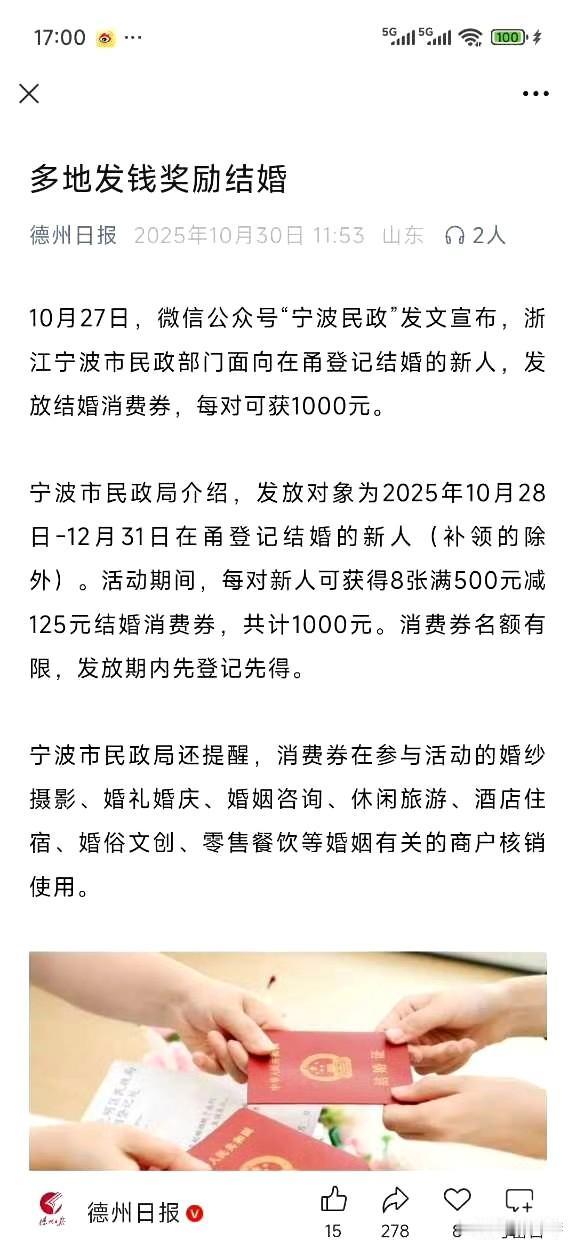 发钱不如法治。来几个离婚或者订婚后分手,全额返还彩礼的案件,比什么发钱都好使[抠鼻]多地发钱鼓励结婚