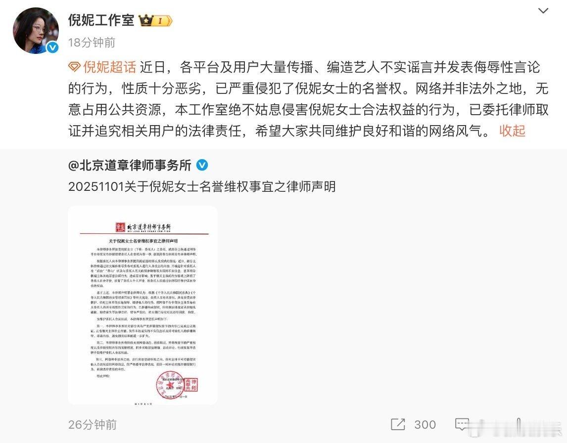 倪妮名誉维权声明 网络谣言太消耗人,果断维权特别解气。不跟着传闲话,就盼着她的待