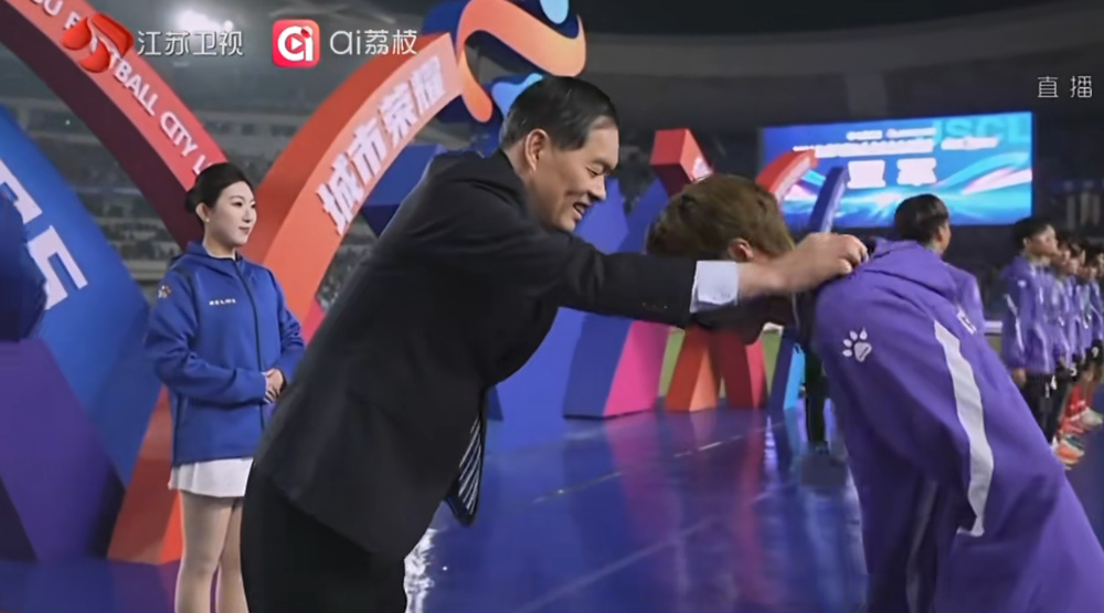 直播画面显示,江苏省委书记信长星为泰州队颁发冠军奖牌,江苏省省长刘小涛为南通队颁发亚军奖牌。