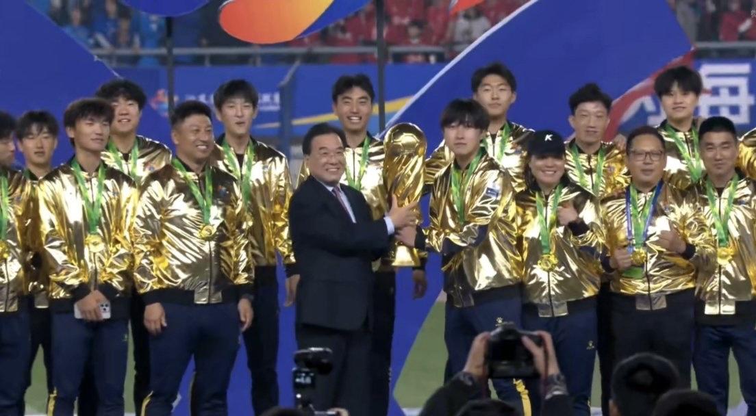 苏超泰州队夺冠!当泰州队球员在南京奥体中心疯狂相拥、泪水混着汗水砸向草皮时,整个