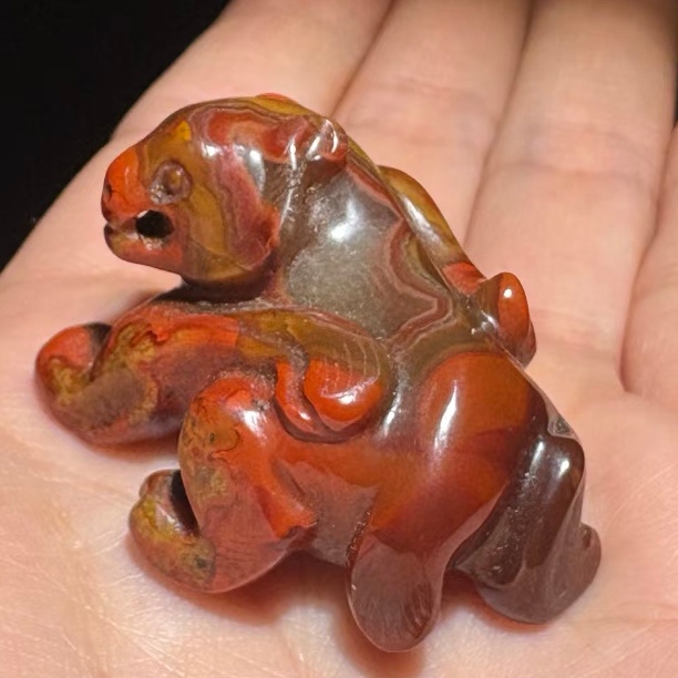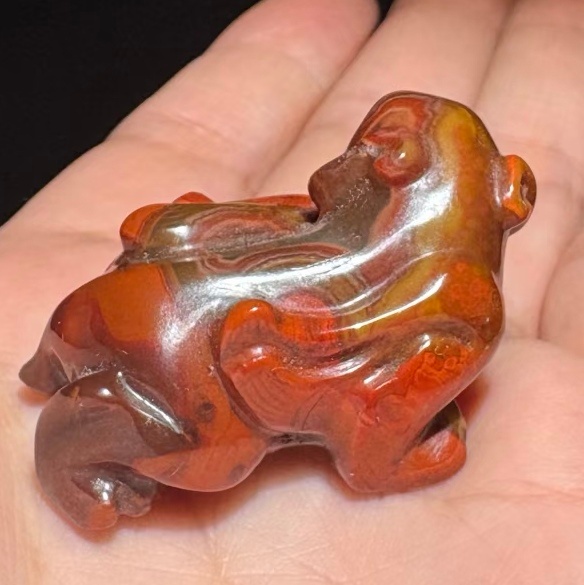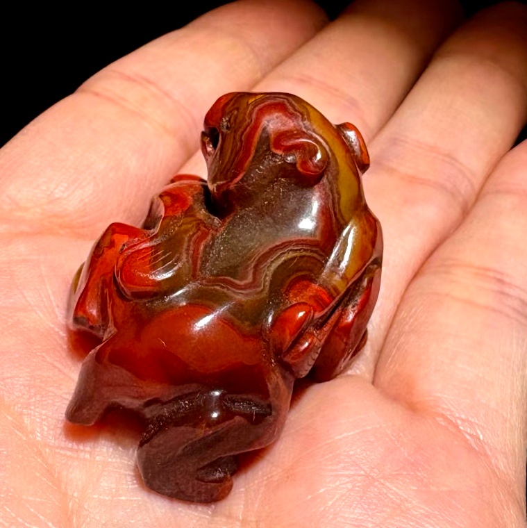 红缟玛瑙,汉熊,东西虽小,分量重,稍加盘玩,很快就能出滋润的包浆……