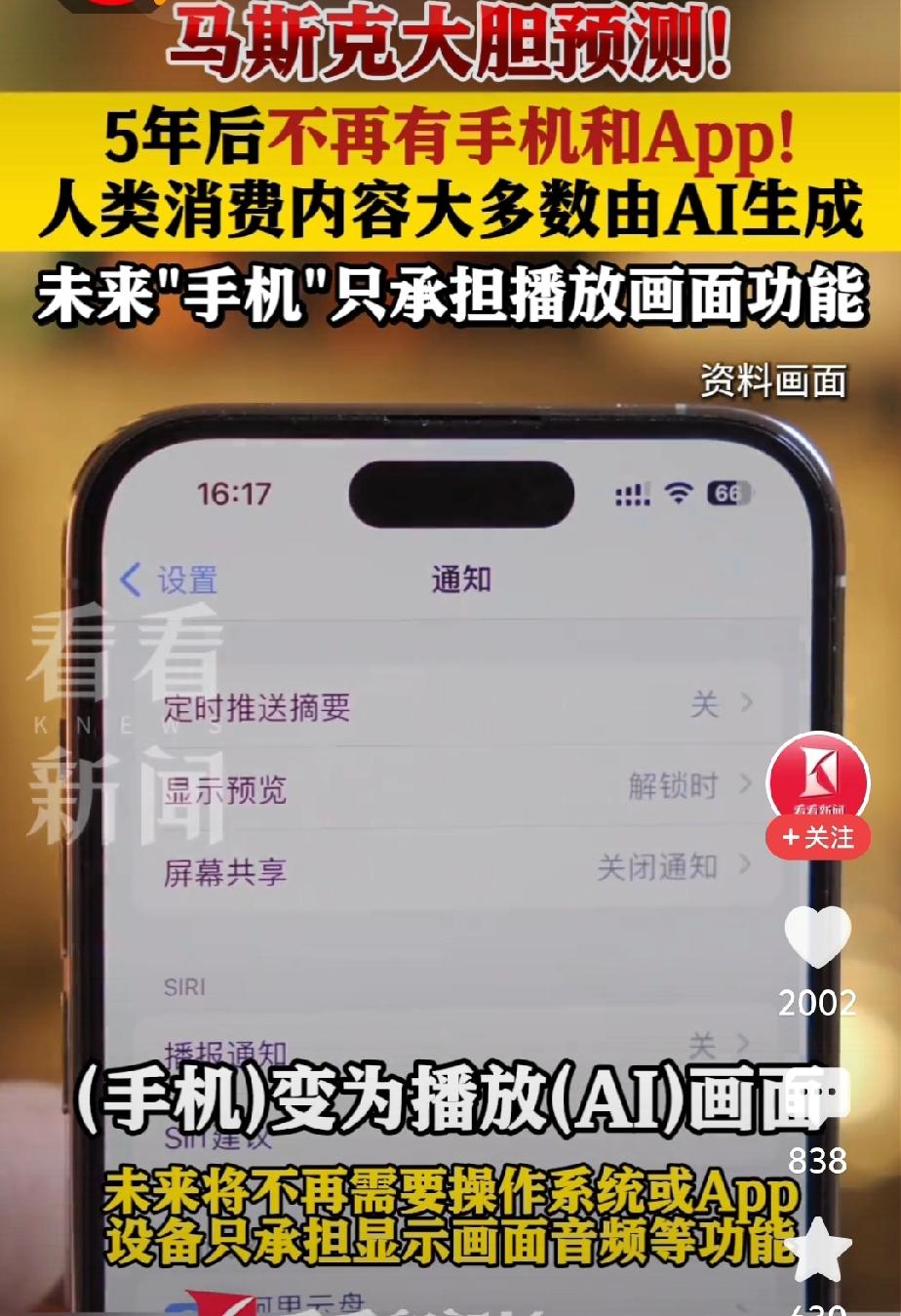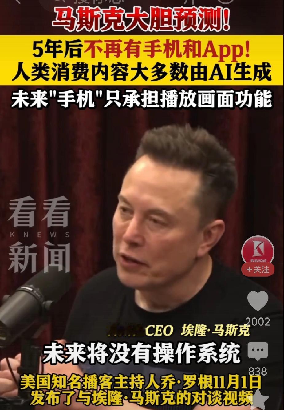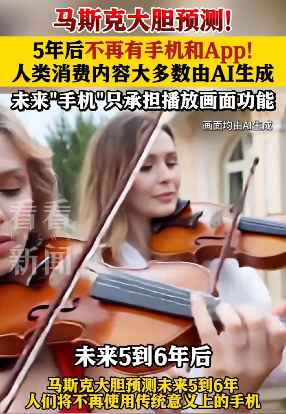 五年之内,大家就不要更换手机了,因为到时候所有手机和APP都会消失,手机不再是人们传统意义的手机了。他将更智能,更颠覆你我的认知。 这是最近马斯克在一次直播时的预言。 那么人们不用手机用什么呢,未来发展的趋势就是AI技术。 马斯克认为,“未来不会有操作系统,不会有APP,人们的手机只是显示像素和发出声音,它能预测你最想看到和听到什么,然后实时生成。 我们所谓的手机,实际上变成用AI推理的边缘节点,配备一些无线电模块进行连接。目前,他们会正着手将AI集成到这个设备中。 阿里云智能集团的董事长兼CEO武泳铭在9月份说过,大模型的出现,今后,我们的自然语言就是AI时代的源代码,任何人用自然语言就能创造自己的Agent。 我们只需要输入母语,告诉AI你的需求,AI就能自己编写逻辑、调用工具、搭建系统,完成数字世界的几乎所有工作,并通过数字化接口来操作所有物理设备。 高科技的发展,节省了人类的物理作业,以后的人类,只需要继续开发自己的语言,动动嘴就能达成心愿。太哇塞了! 机器人的开发和AI的应用,解放了人类,想象生活该是多么的美好! 只是有一点,令无数科学家担忧的是,AI一旦意识觉醒,人类就将面临灾难产生,人类现处在历史的转折点,到底是该进还是该退,纠结吧! 图片来自网络,侵删致歉!