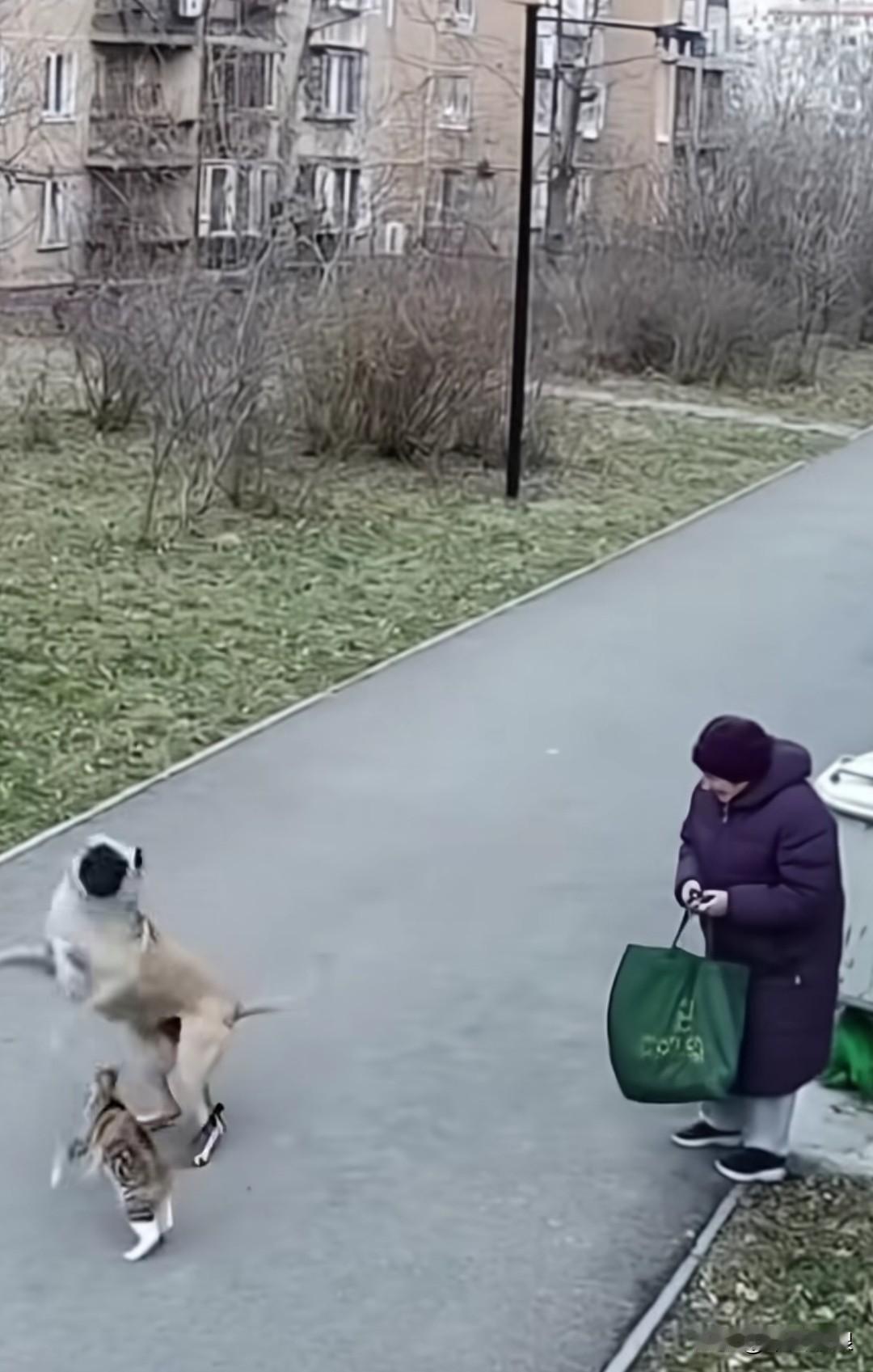 奶奶带着一只猫咪走在马路上,突然,一只没栓绳的恶狗猛地扑向奶奶,张嘴就咬。猫咪反应敏捷,纵身一跃跳到狗狗头上又抓又咬,让恶狗无法得逞。恶狗斗不过猫咪,只能灰溜溜地逃走了。猫咪这一勇敢举动,救了奶奶一命。奶奶弯下腰,轻轻抚摸着猫咪的头,说道:“谢谢你。”无绳恶狗伤人