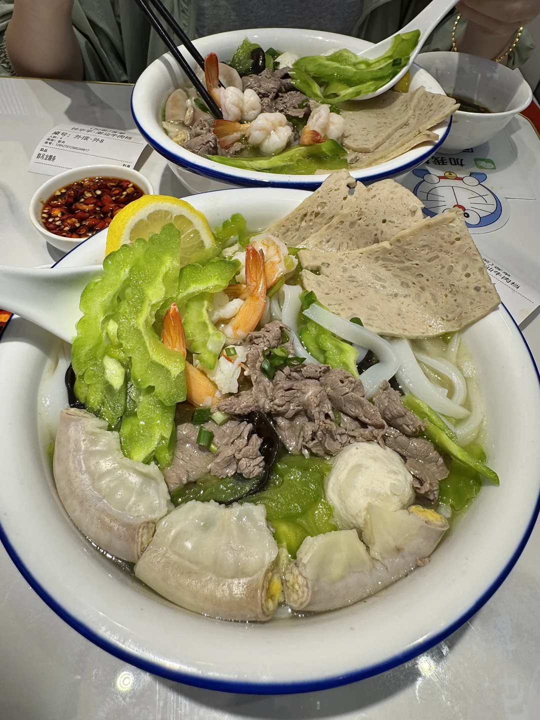 就在彭埠!!和朋友连续吃了好几天了😭。。。 冰冰凉凉的白玉糖水!!QQ脆脆的好好吃!苦瓜柠檬虾仁粿条!味道清清爽爽真心不错~ 荔枝树莓雪花冰!果肉又新鲜又大颗🤤 还有他家那个鸡煲!!锅底清甜!!鸡肉好嫩!!肉属于不需要蘸料都很鲜美的那种~各种牛肉品质也嘎嘎好!! 杭州说点吃喝大实话