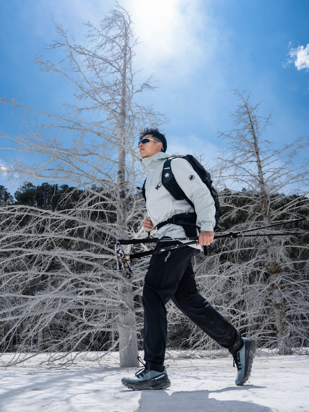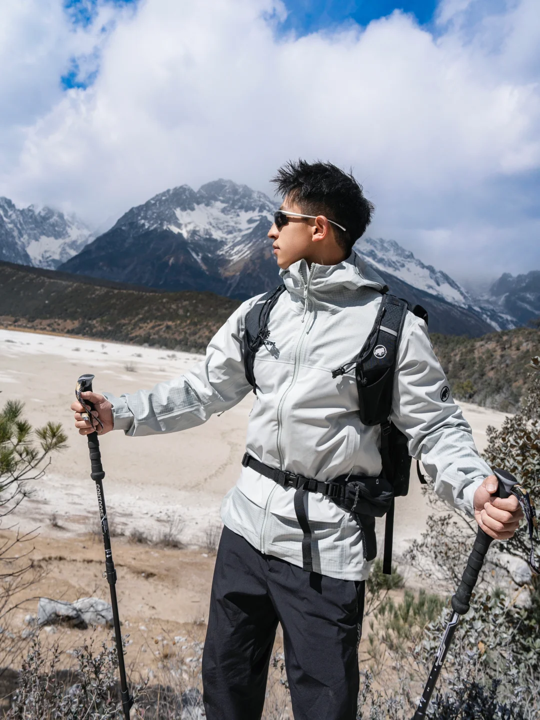 当山脊线在云雾中若隐若现 在这里有着最孤独的树 白雪的牛奶湖 能望见雪山锋利暗黑的岩壁 在这里能近距离感受玉龙雪山的魅力 路线分为 树林 山谷 山脊 和河滩 就意味着 湿润 寒冷 大风 和闷热 穿上MAMMUT猛犸象Ducan Guide硬壳冲锋衣 3层Mammut DRY Tour科技面料 就像风雨无阻的移动堡垒 全面防水透汽没有束缚感 让我徒步中自如应对多异天气和环境 舒适感很到位 特意搭配MAMMUT猛犸象Aenergy Hike徒步鞋 俨然徒步路上的永动机 弹力到位的瑞士设计外底 在行走过程中提供可靠的抓地力 跋山涉水也不容易累 这段旅程 最令我惊喜的就是 MAMMUT猛犸象Ducan Spine徒步背包 不愧是新升级的MAMMUT动态脊柱技术第三代 仿生脊椎承托框架×动态重心调节系统 在连续爬升800米海拔后 依然保有腾跃山涧的自由度 让徒步变得越来越轻松! 在玉龙雪山的尽头 我感受到了大自然的壮丽与宁静