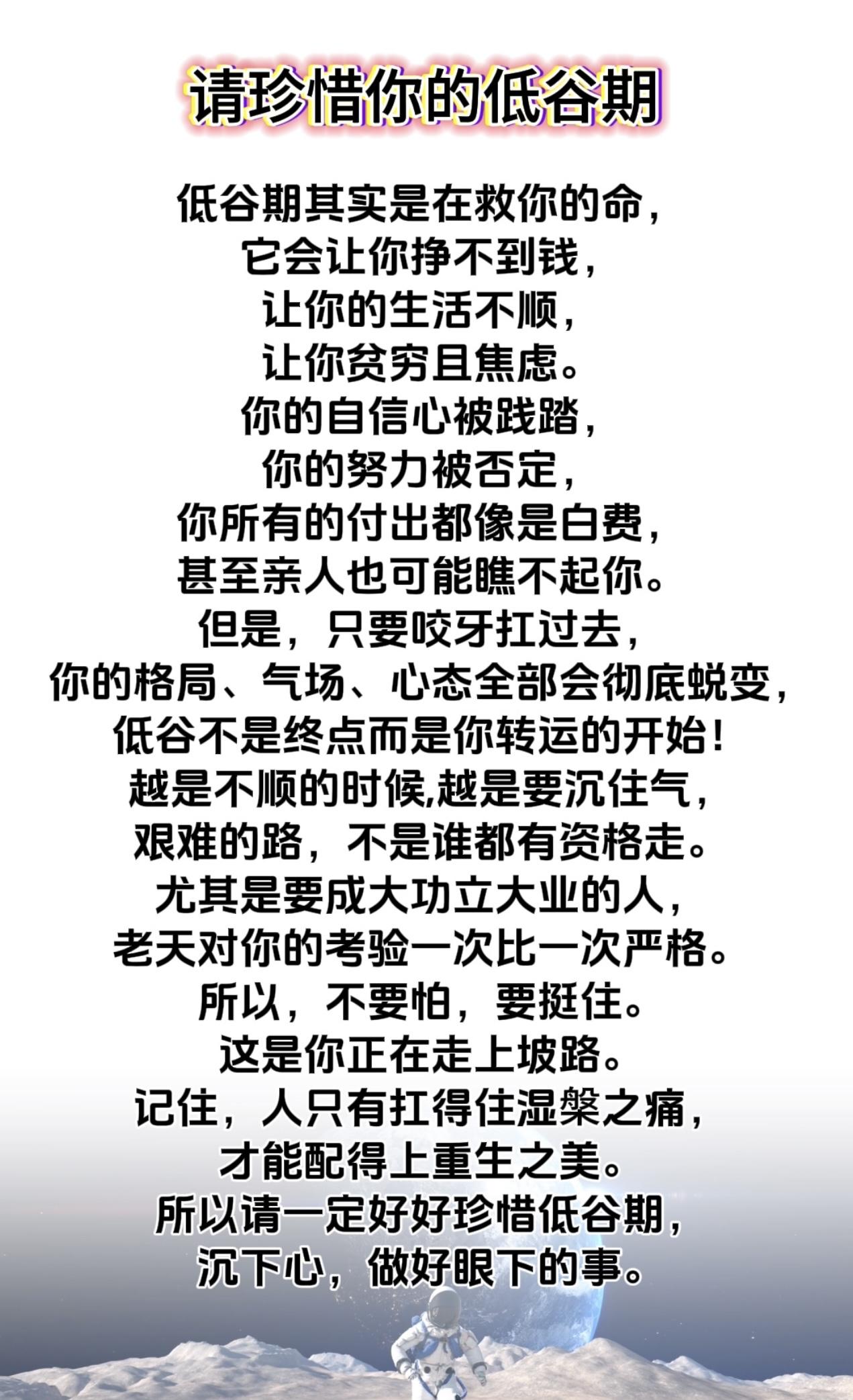 今天看到一个视频,瞬间被点醒了,请珍惜你的低谷期!人生低谷期感悟 低谷期要乐观