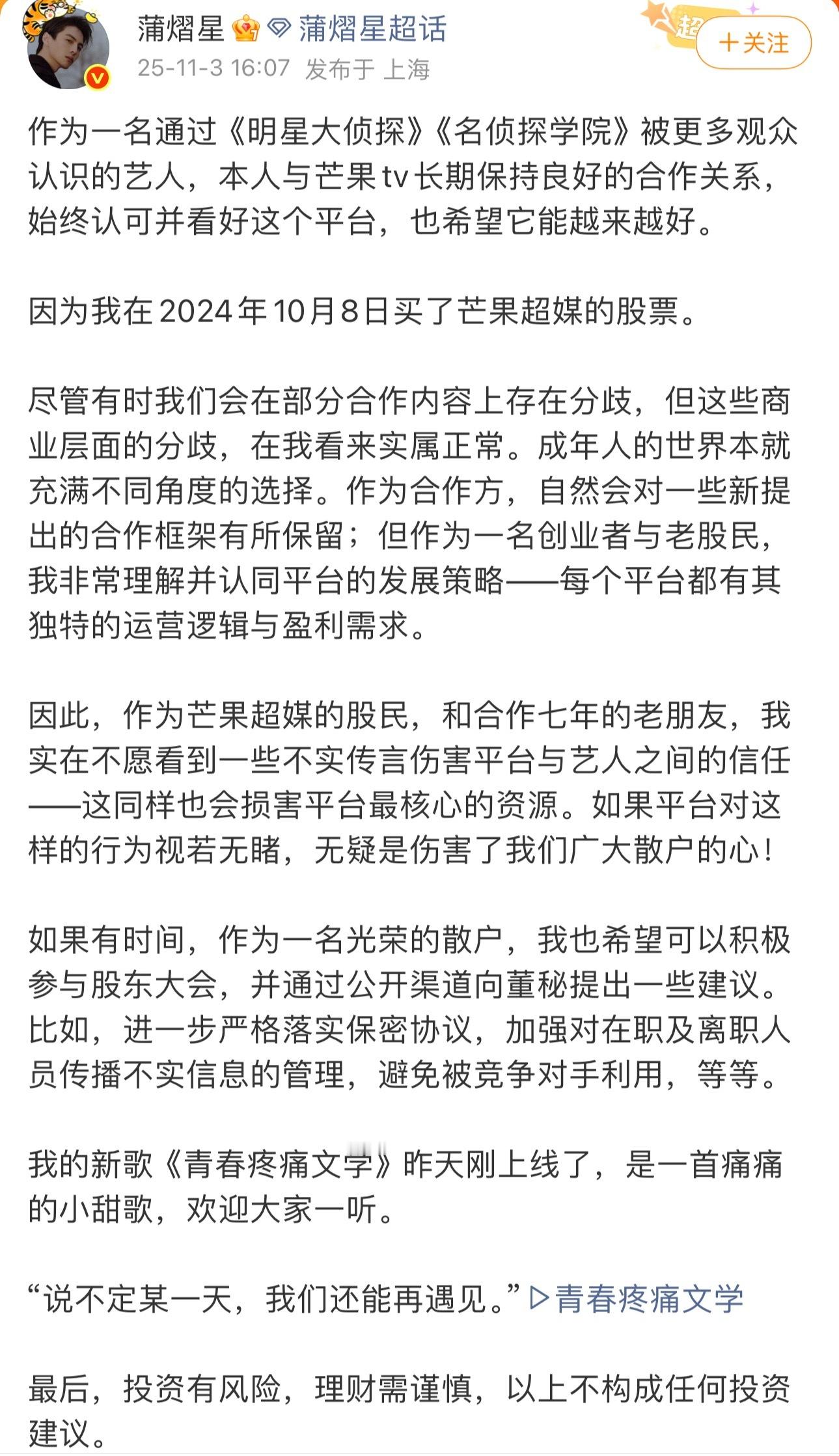 有点意思蒲熠星通告费蒲熠星回应通告费