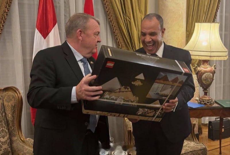 丹麦外交部长向埃及外长赠送乐高大金字塔套装