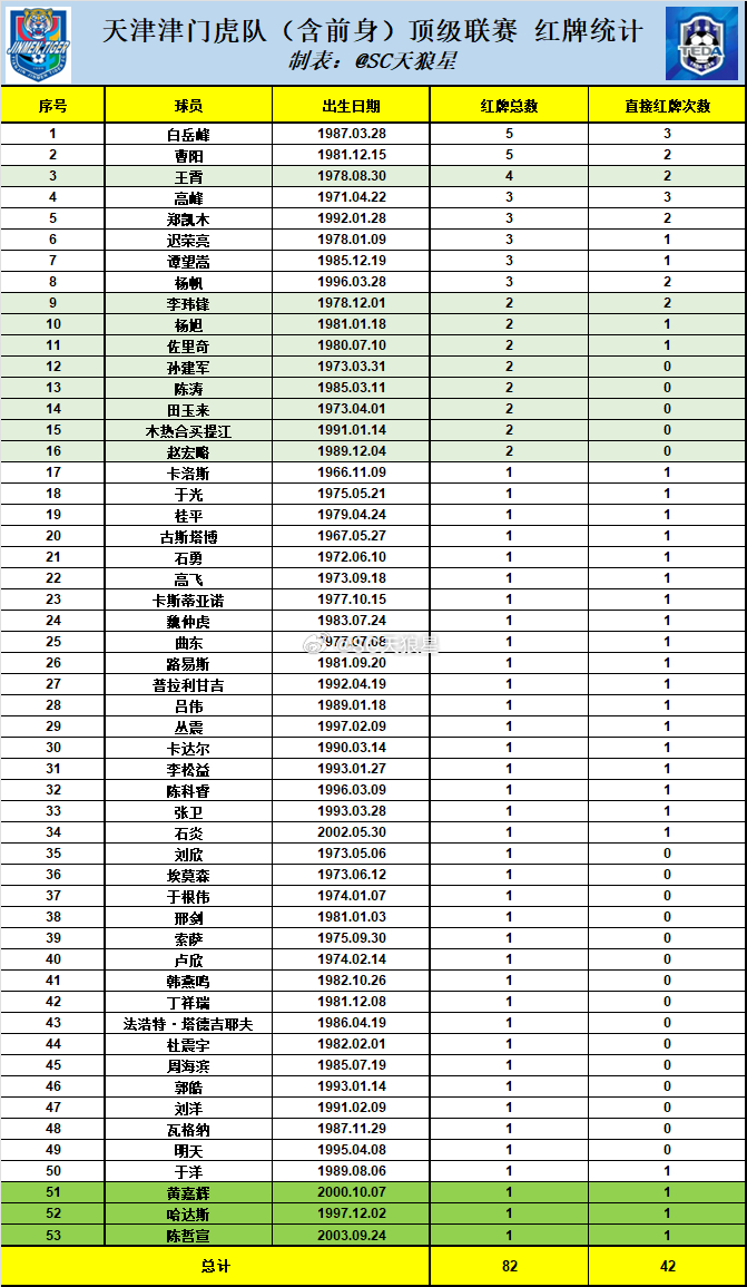 4. 陈哲宣下半场染红,这张红牌也是球队今年第1张红牌;也是职业化以来,球队在顶级联赛上第82张红牌;同时也是队史第3位,在联赛中染红的00后球员。(之前是石炎+黄嘉辉)(图3)