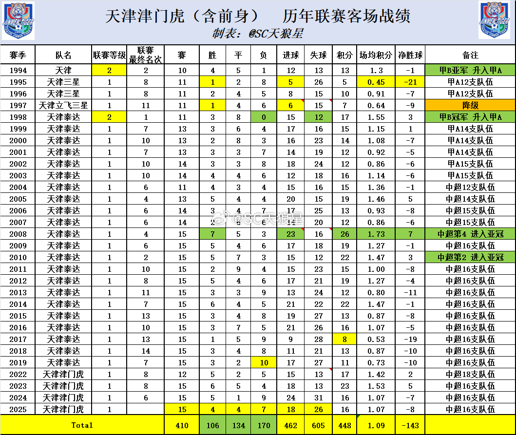 3. 这场比赛也是职业化以来,球队在联赛中,第410个客场比赛(中超/甲A 389场+甲B 21场)(图2)