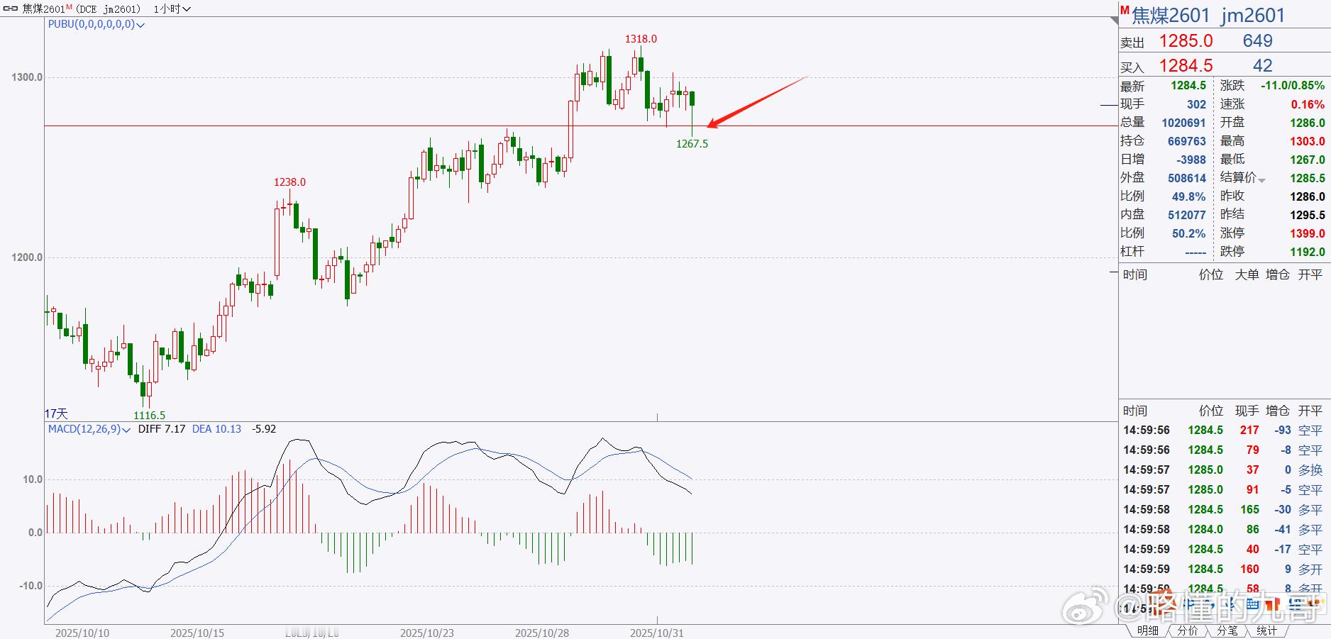 期货 焦煤现在想空的话,等横线处收大阴线!