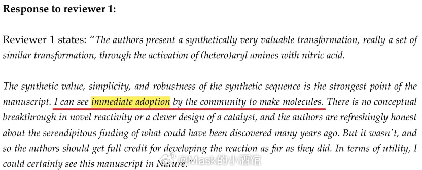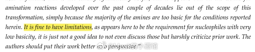 另一位审稿人也提醒,这个方法对亲核试剂有要求,碱性太强的不行。但他说:"有局限性很正常,关键是效果摆在那儿。"