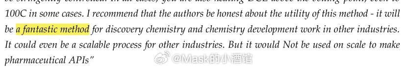 有位审稿人说这个方法不会被用来大规模生产成品药。