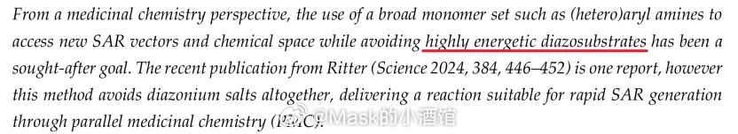 他们用一种叫"N-硝基胺"的新物质替代了重氮盐,不但更安全,效率还更高。