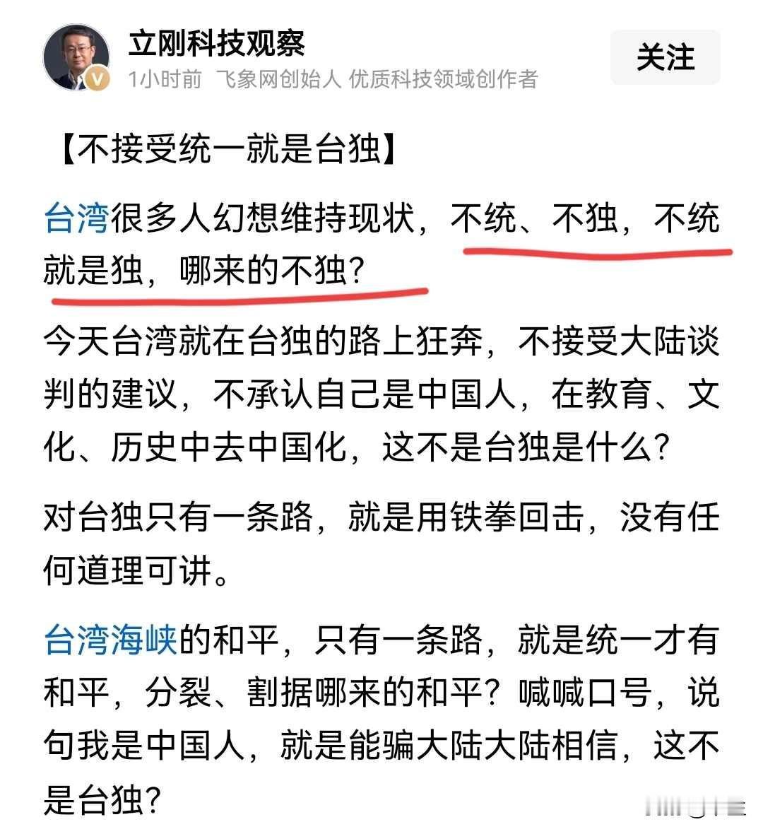 台湾现状,话语重构,人心争夺战 2025年10月,中共二十届四中全会公报发布,其中没有提及“和平统一”这一表述,转而使用“推进祖国统一大业”,有人对此感到不解,认为可能意味着放弃和平方式,实际上,官方传达的意思是统一进程不能拖延、态度不能模糊、现状不能回避,如果无所作为,就等于默认分裂局面延续下去。 项立刚最近写文章把话说得很直接,不统一就等于搞分裂,维持现状也是搞分裂,让学校教科书去掉中国的内容,同样是在搞分裂,这话听着让人难受,但道理是清楚的,项立刚不是在空喊政治口号,而是在讲文化根基的问题,台湾这二十年慢慢把历史、语言、教材都变得和大陆不一样,这种改变比打仗还要厉害,它会悄悄让人忘记自己的根在哪里。 大陆这边的想法已经改变了,以前总说要等台湾同胞慢慢想明白,现在变成我们要主动去重建两岸之间的认同感,统一不只是在地图上画一个圈,还得让年轻一代清楚知道自己的根在哪里,这就是所谓的人心回归,听起来可能有点像宣传口号,但实际上有很多具体行动在推进,比如大陆的高校现在提供更多奖学金给台湾学生,鼓励他们过来读书,结交朋友,亲眼看看真实的大陆情况。 国民党方面还在不断强调民主自由和两岸和平,用的依然是上世纪九十年代那套说法,他们觉得只要把经济搞好,大家就愿意坐下来谈,但实际情况是,大陆方面已经不再提对等谈判,也不接受所谓“中华民国”的称谓了,台湾内部的种种。