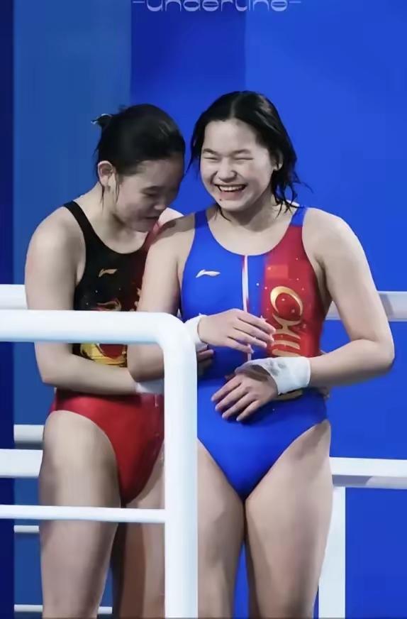 全红婵和张家齐都是国家队的队友,也是好朋友,两人在全运会上互动的画面好暖心,她们应该很久没见了,一见面就又搂又抱的,张家齐还调皮的玩起全红婵身上的肉肉,全红婵并不介意,两人都笑得非常开心,只有亲密的人才会这么互动吧,希望两小只的友谊长存。(图片来源于网络侵删)