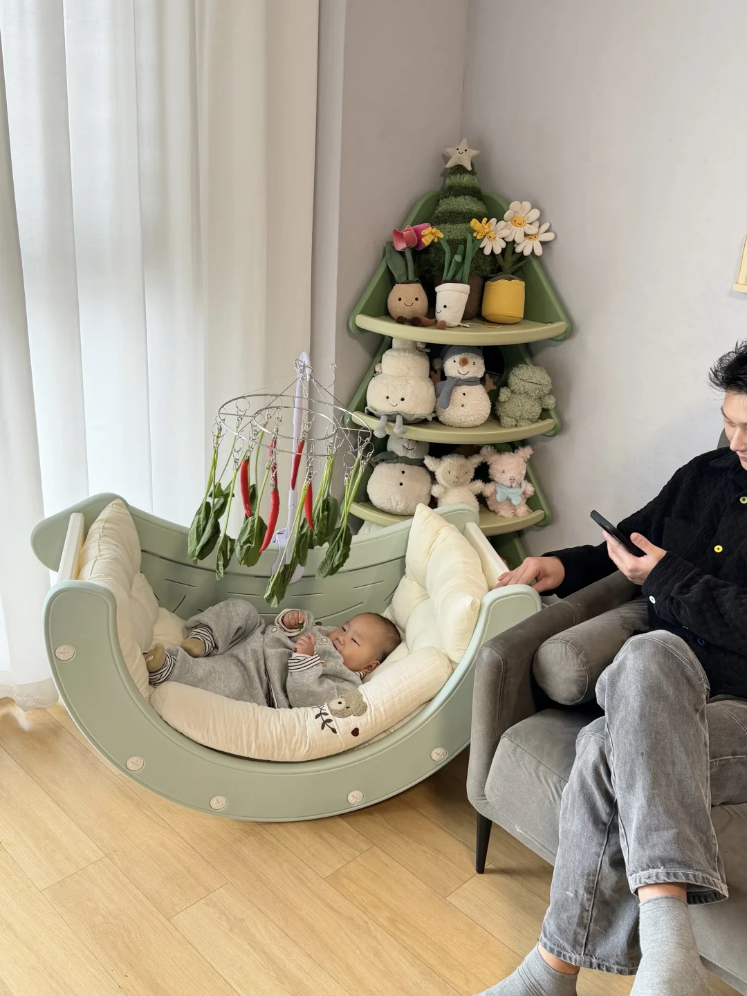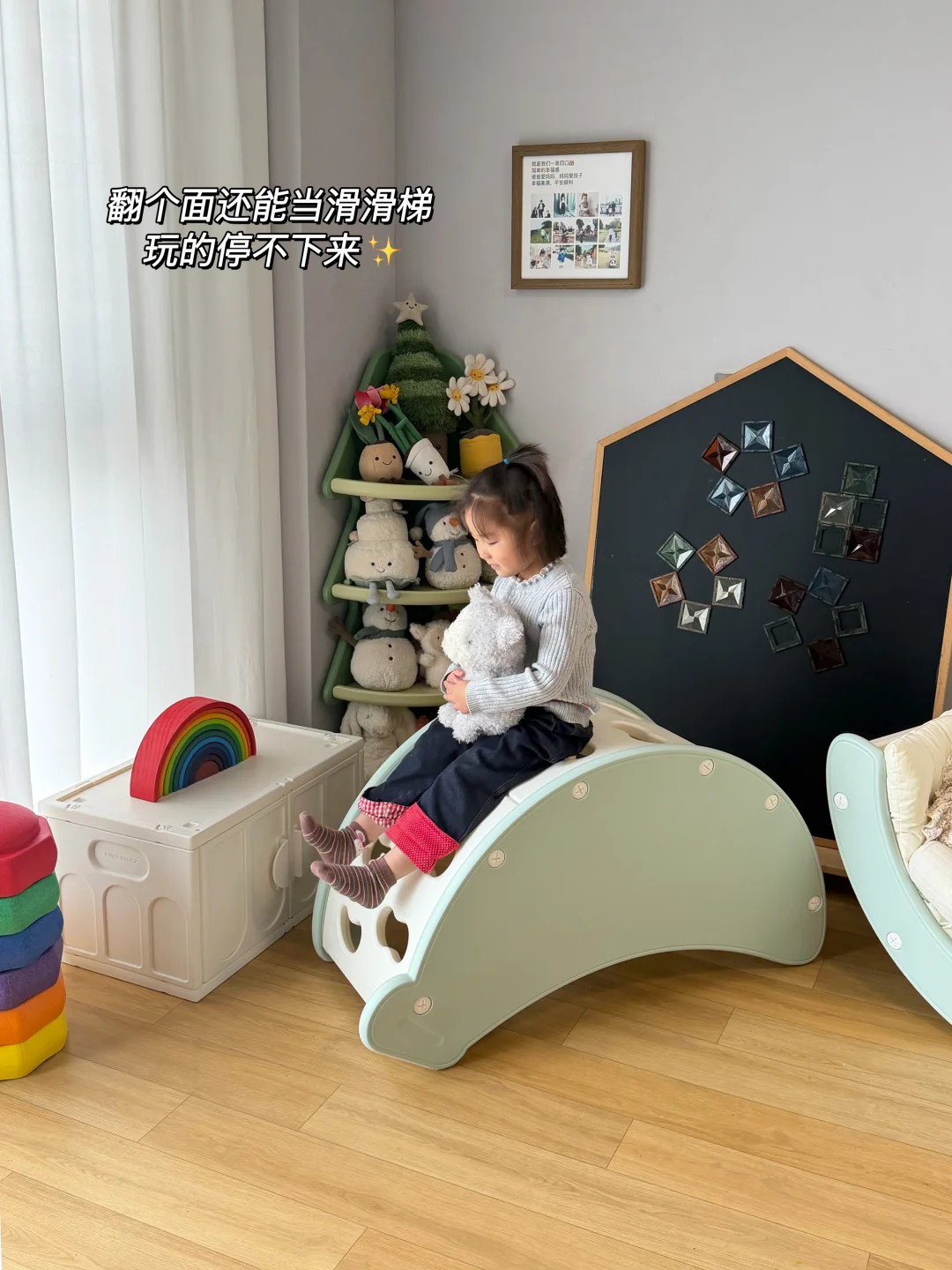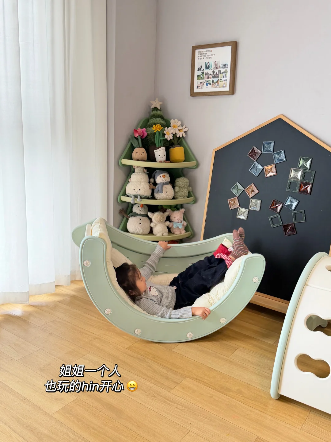 哇哇哇!就是介个才100多的摇摇床 直接硬控了我家娃一整天🤣 还有N多种用法 不需拆卸直接秒变 摇摇床+攀爬架+平衡板+小围栏+小书桌+滑滑梯+秘密基地=它👈 娃自己就能玩的很嗨 属于我的精简式带娃~hhh 等娃大了就给她当作小书桌、置物架用 都不用担心会闲置了 是真的香~强列安利!!