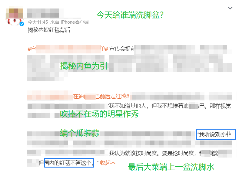 综上,这是为了博眼球给大咖编瓜制作话题,最终大菜是为了给吃瓜网友喝一盆洗脚水的乞讨故事。