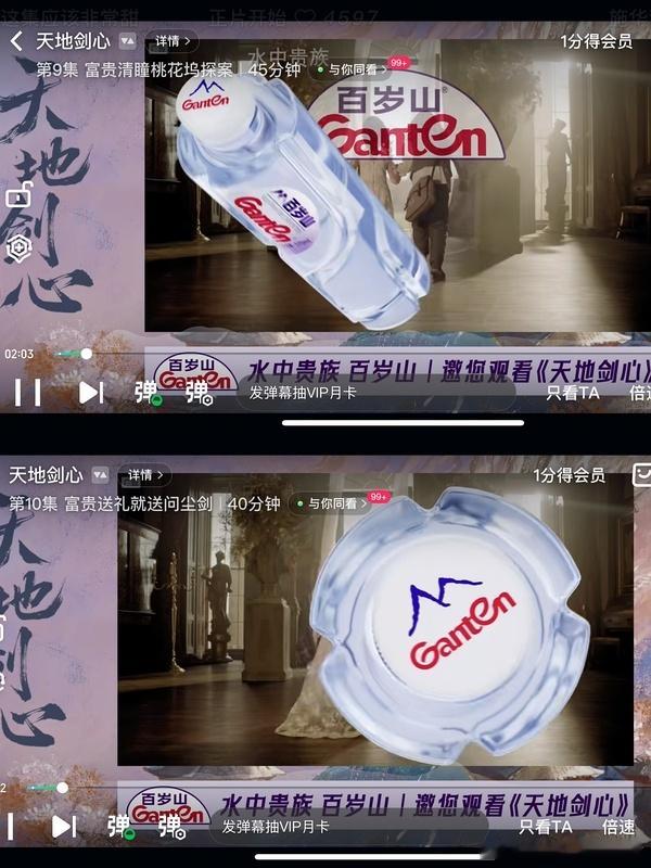 天地剑心第九集第十集片头,新增加百岁山投广。播剧中更新完的剧集加广,说明有很多新