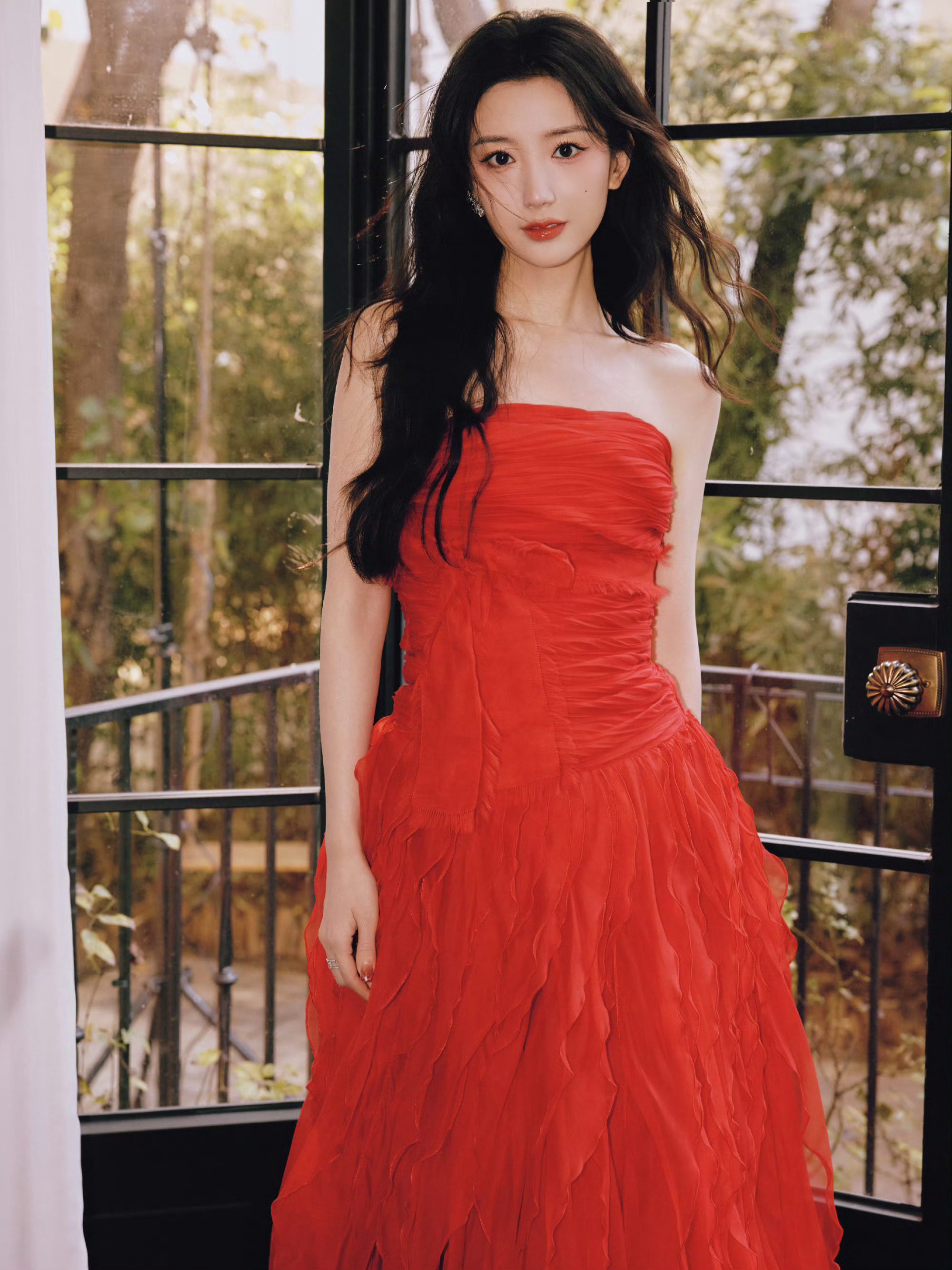 毛晓彤,惊艳红裙,优雅气质,红衣美人,时尚大片红衣佳人写真毛晓彤气质女明星