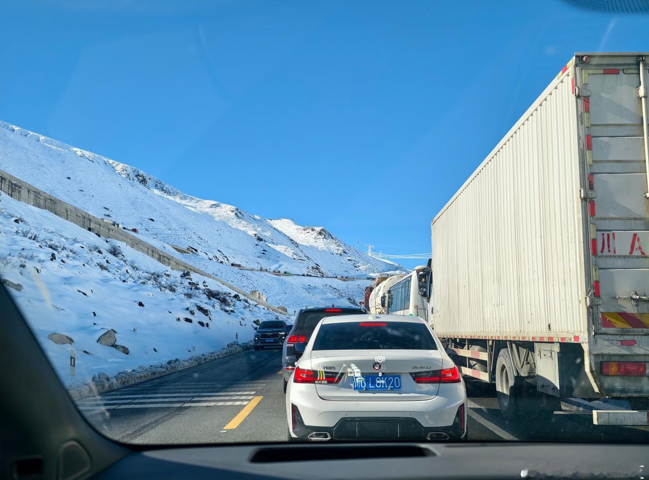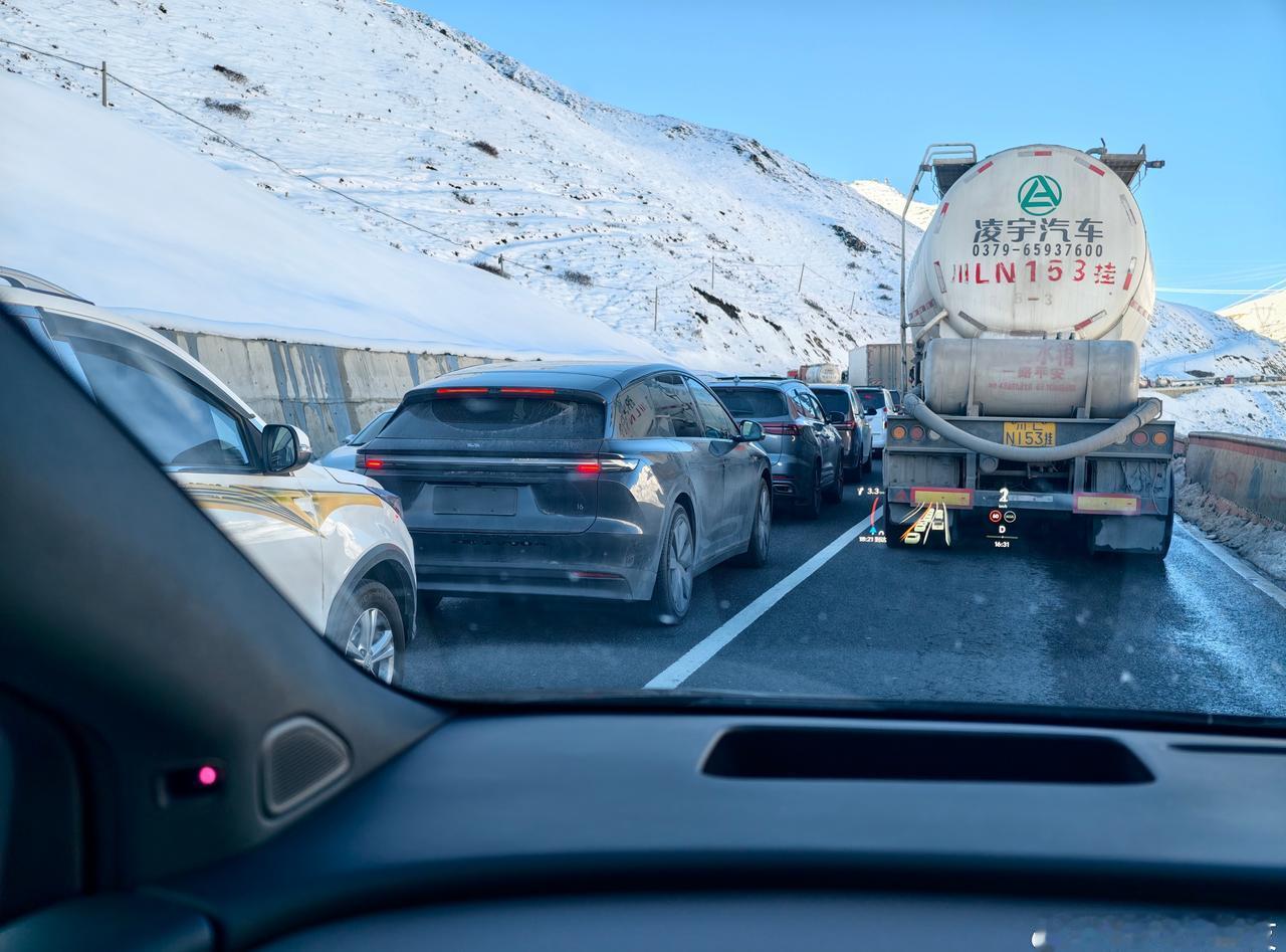 一句蓝莲花,堵在318,折多山大堵车了! 碰上同款理想i6 ,黑色的,车上小姐姐
