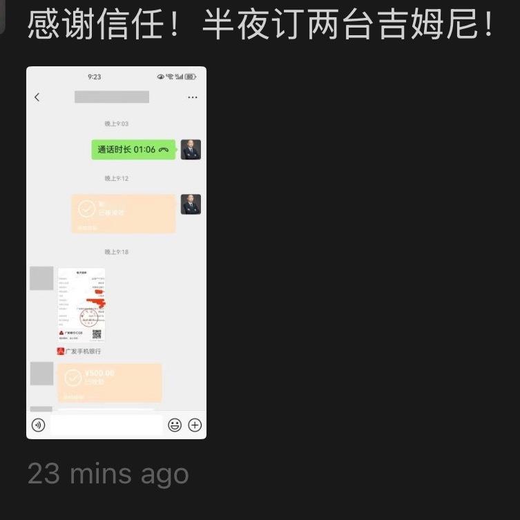 刷到同行卖了两台吉姆尼,我就好奇收了多少定金,结果打开一看,两台收了500块钱定金。