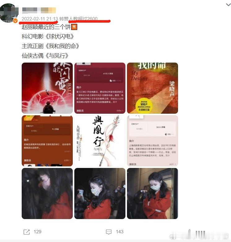 一个是光线法条电影《最暖的归途》,阵容还有邓超,范丞丞,章若楠,另一个是正午阳光的电视剧《开盘》,搭档白宇帆,还有一个是芒果的《简单的人生》,搭档李沁,感觉可能就是用赵丽颖名字热饼,去年和前年网传赵丽颖的三个大饼《江山大同》,《生命树》,《玉兰花开君再来》,没有一部是赵丽颖演的,赵丽颖反而拍了大家都不知道的《造城者》,不过这次芒果肯定会给李沁一部剧,作为录制《花少》的福利。