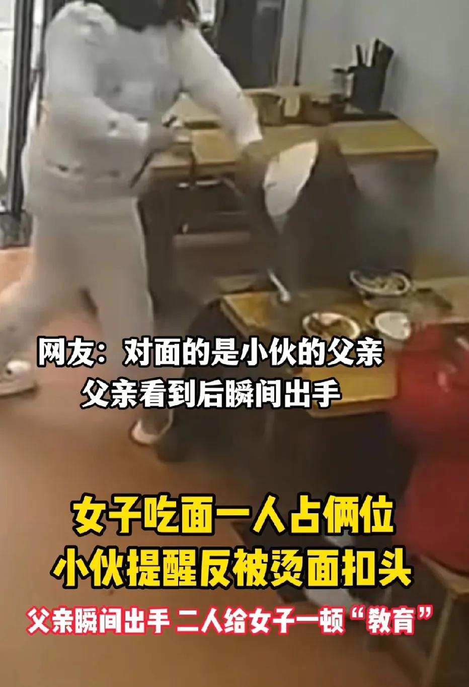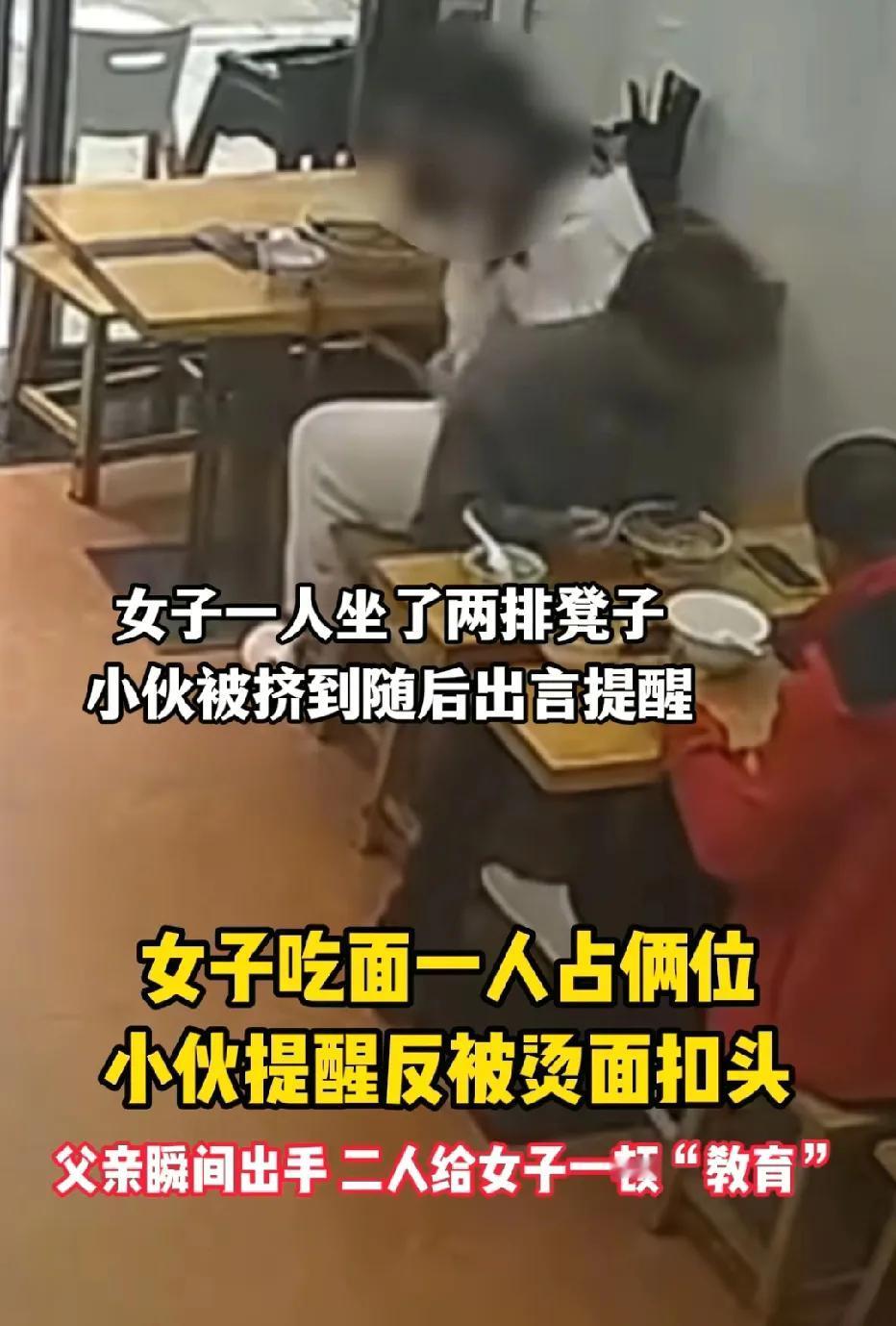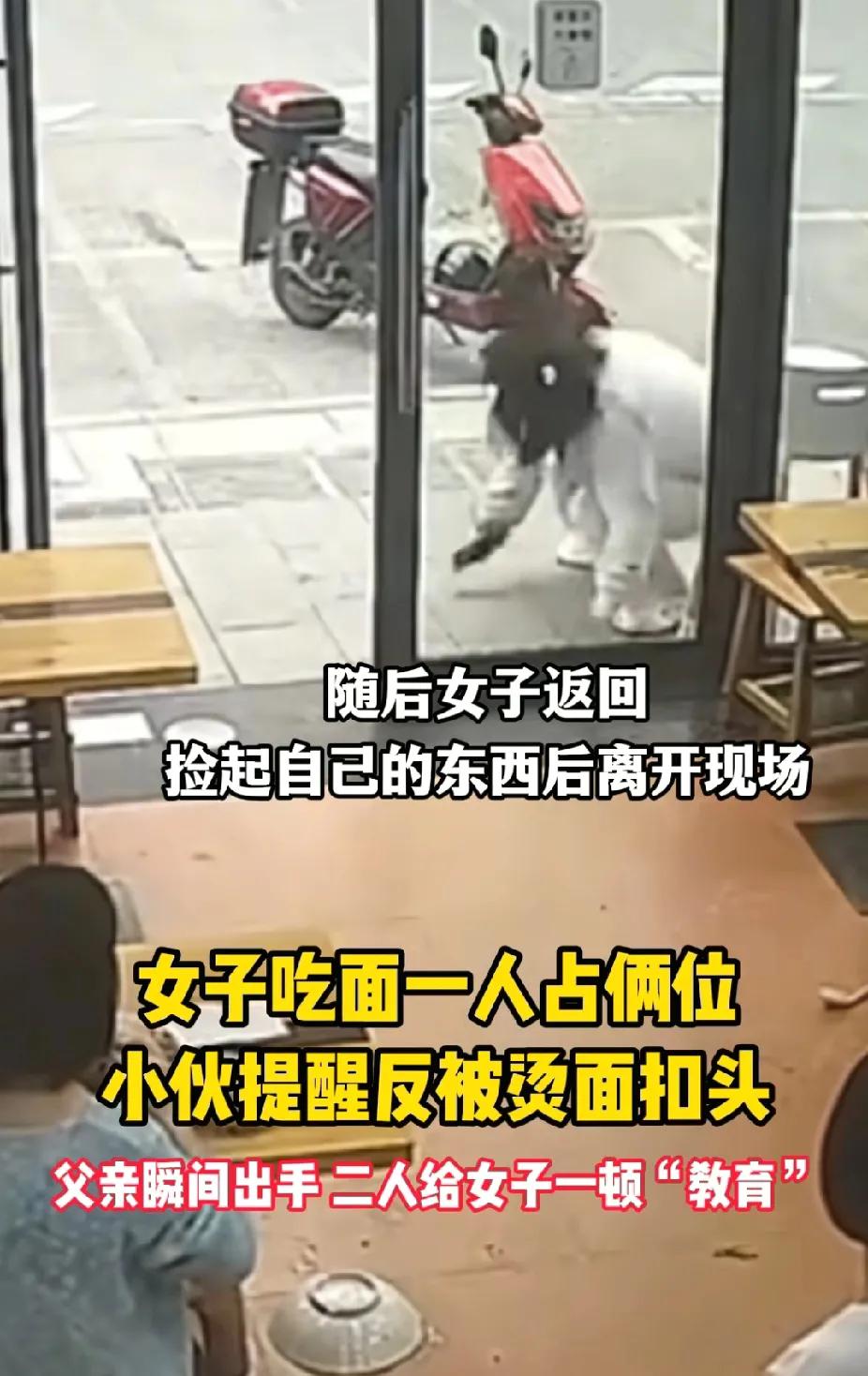 浙江杭州,女子在饭馆吃面,她多次向后挪动,凳子挤压身后男子,男子礼貌提醒时,谁知