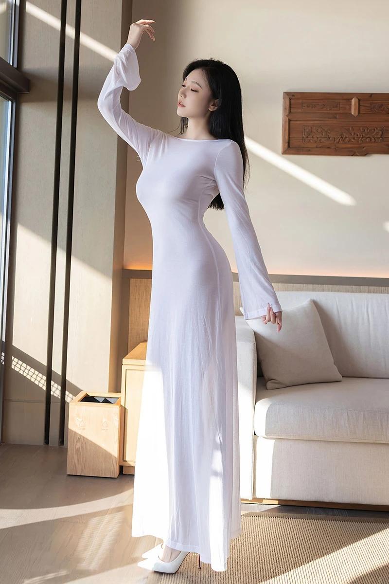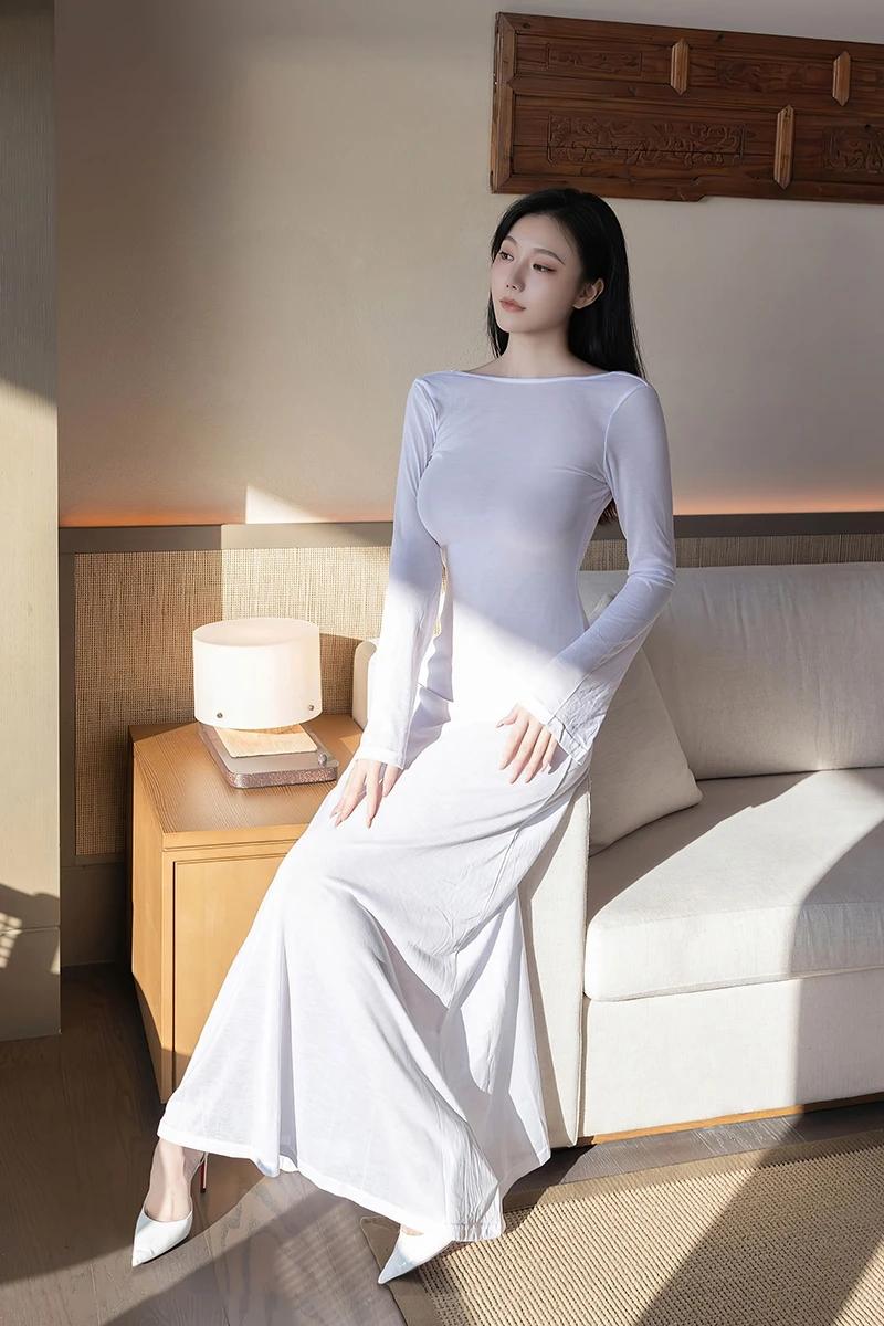 红底鞋+修身白裙,海边姿态绝了!安然anran新写真