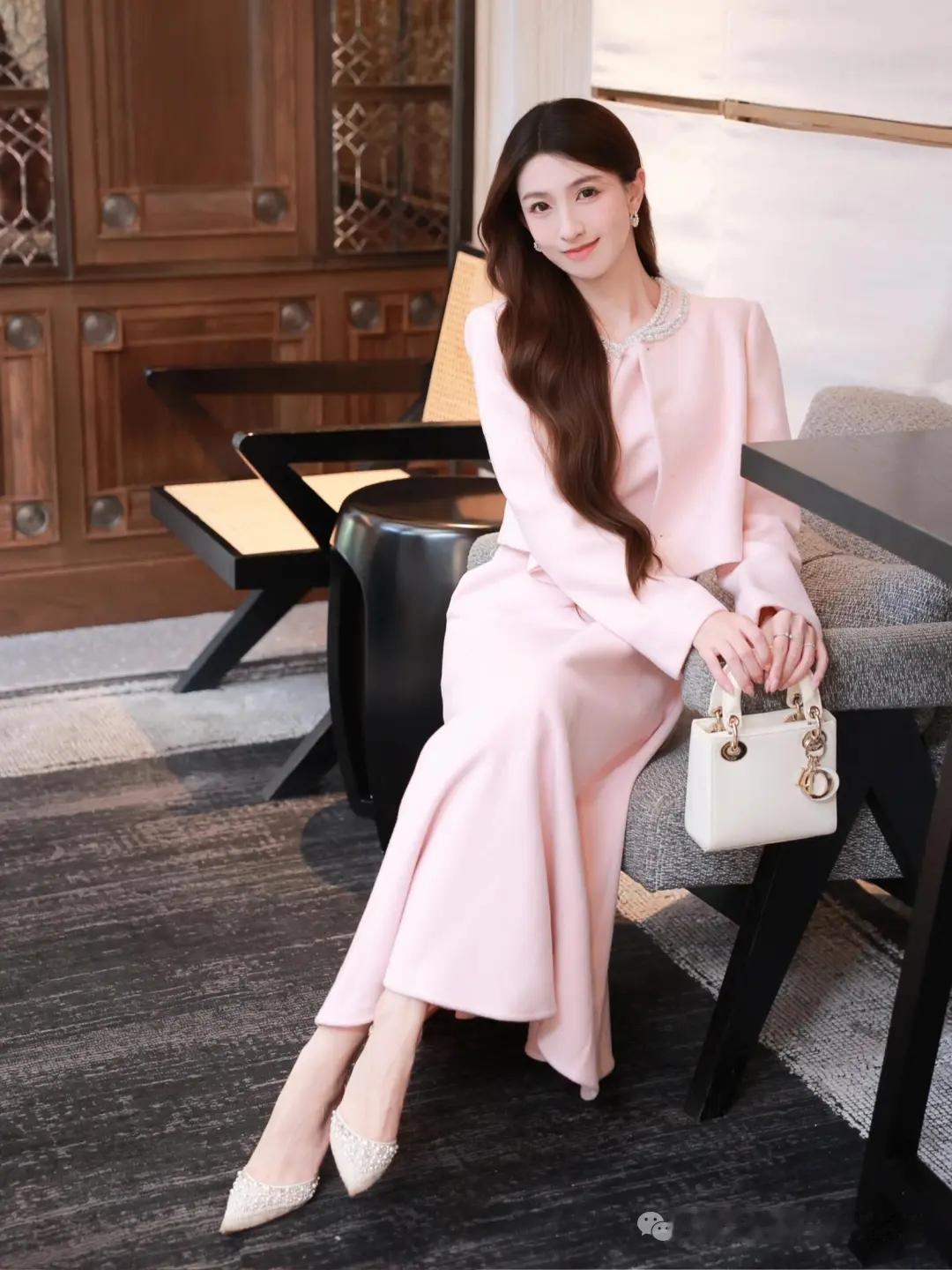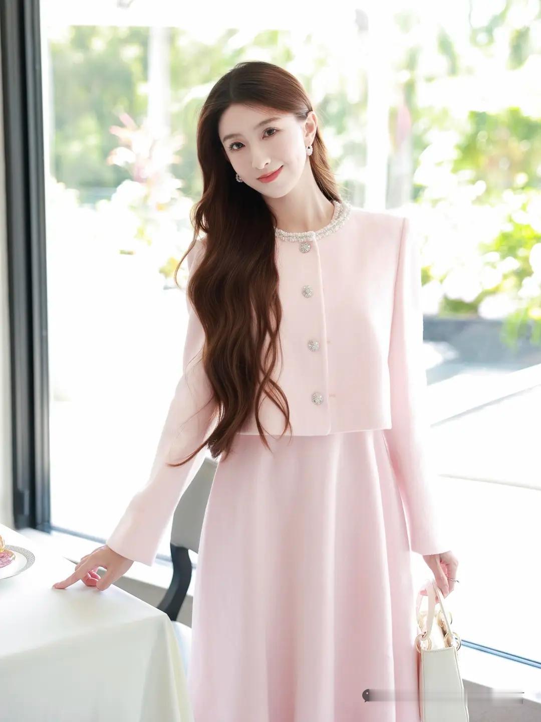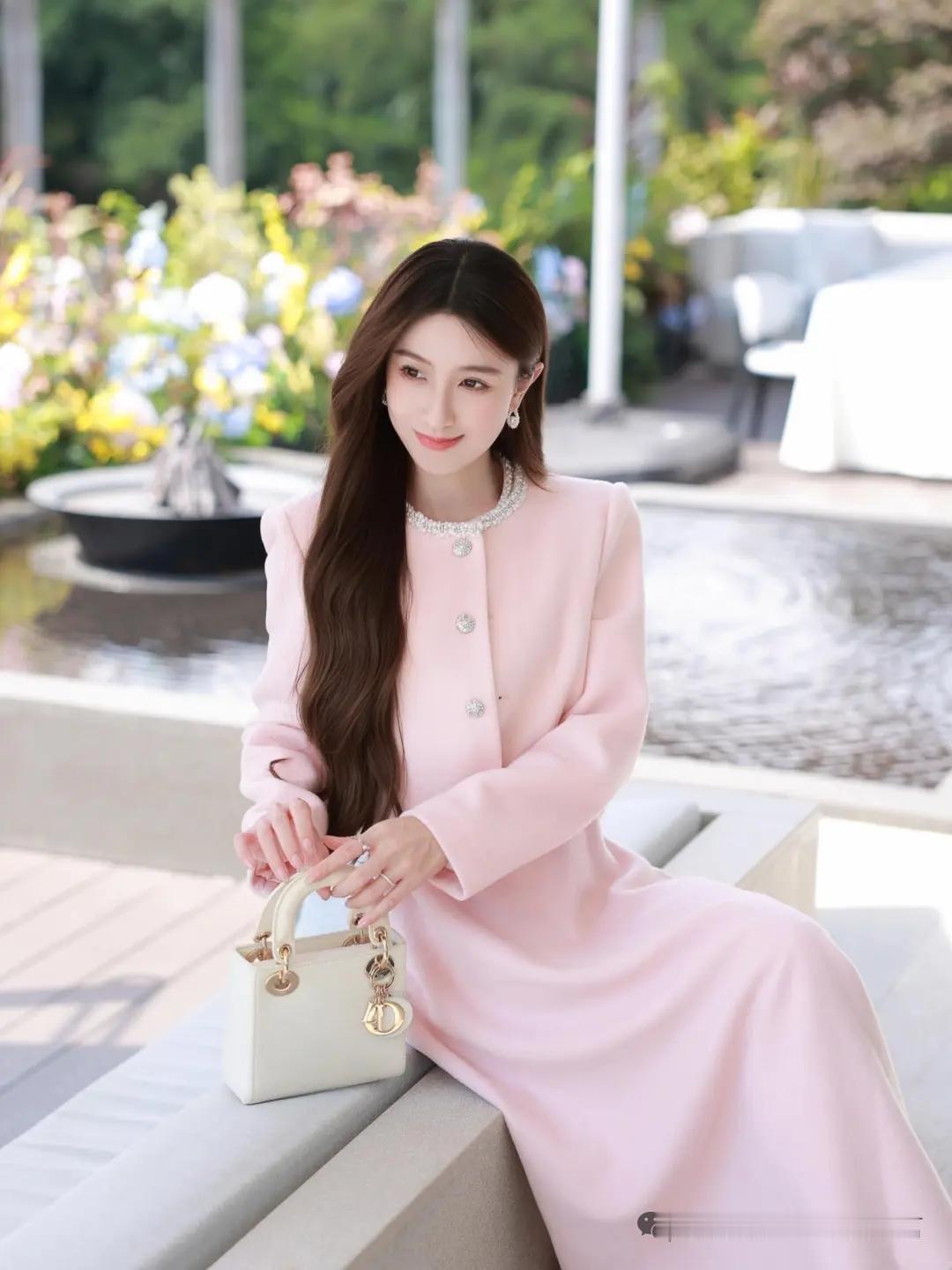 颜值cos:春日粉樱俏外套,珍珠领口温柔奢华梦