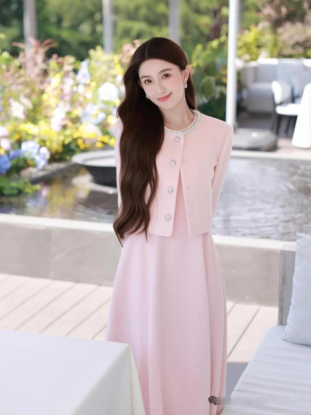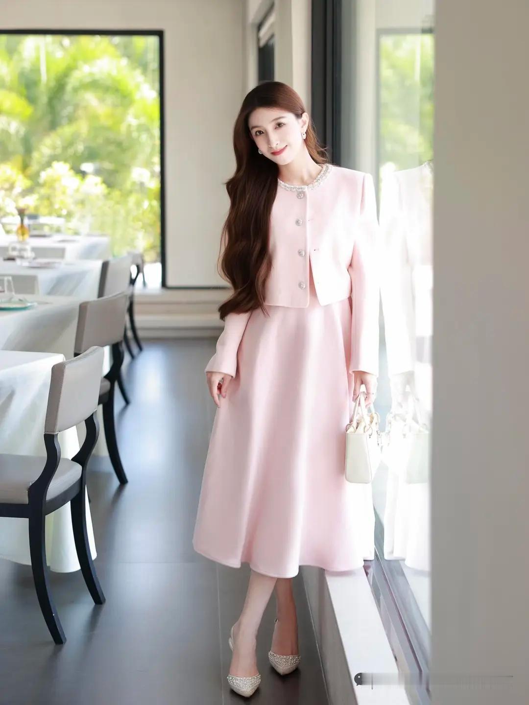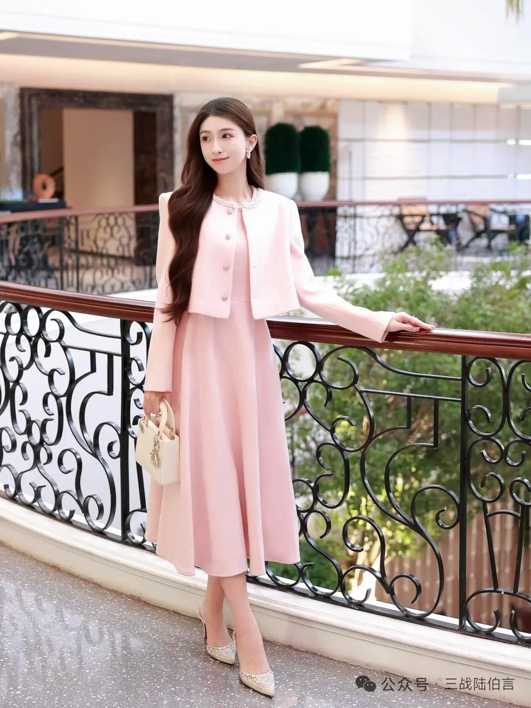颜值cos:春日粉樱俏外套,珍珠领口温柔奢华梦
