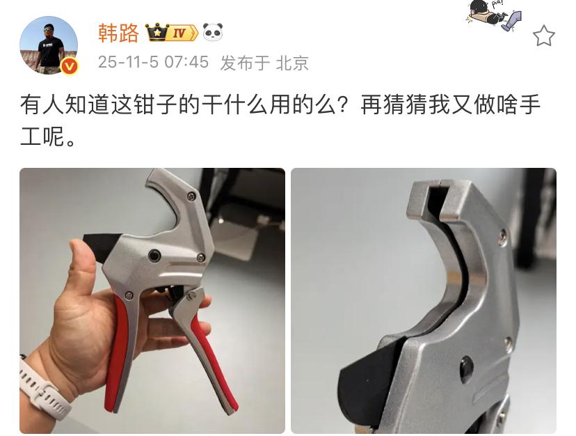 韩路:有人知道这钳子的干什么用的么?再猜猜我又做啥手工呢。 从这个上面看有个刀