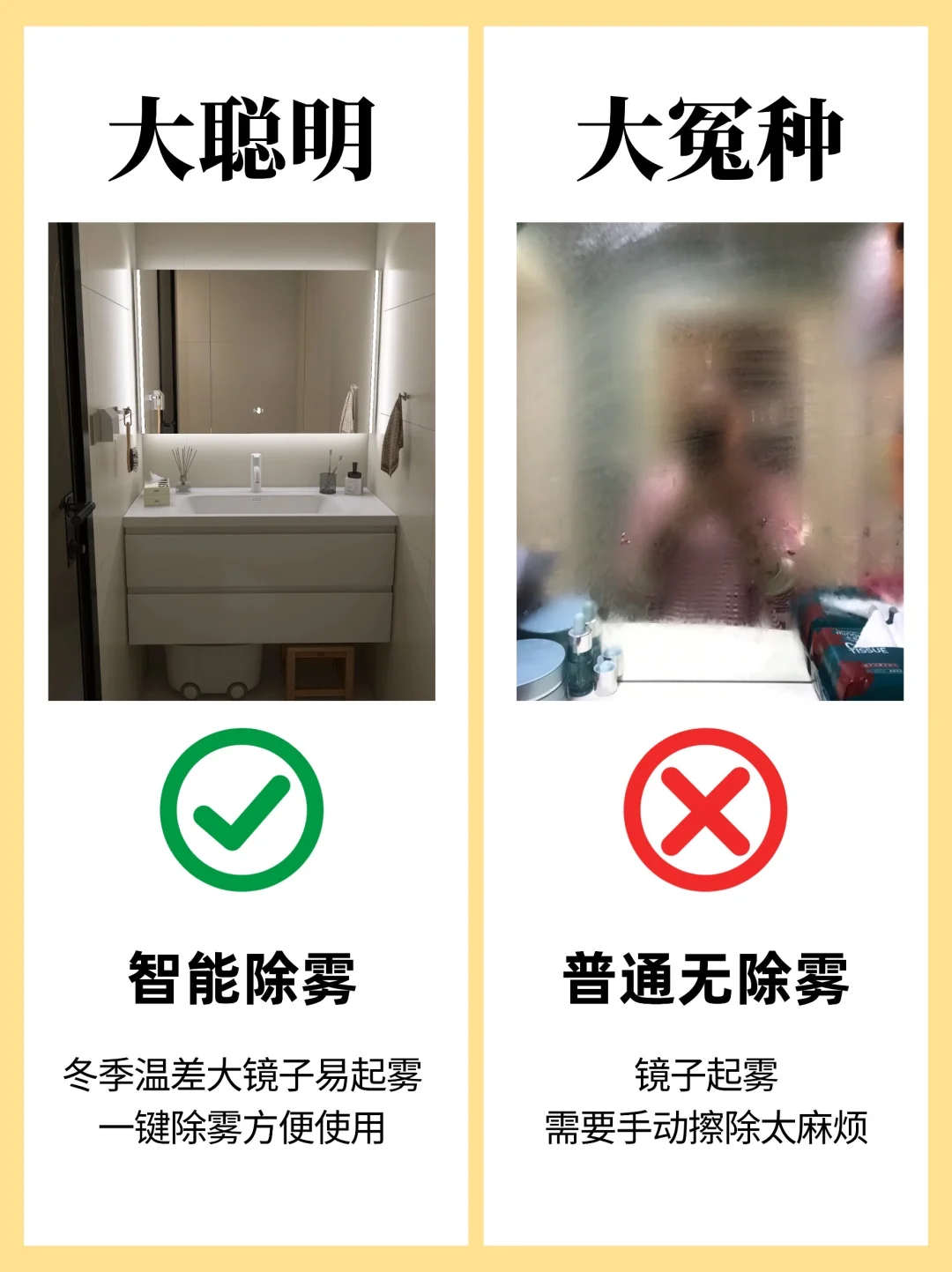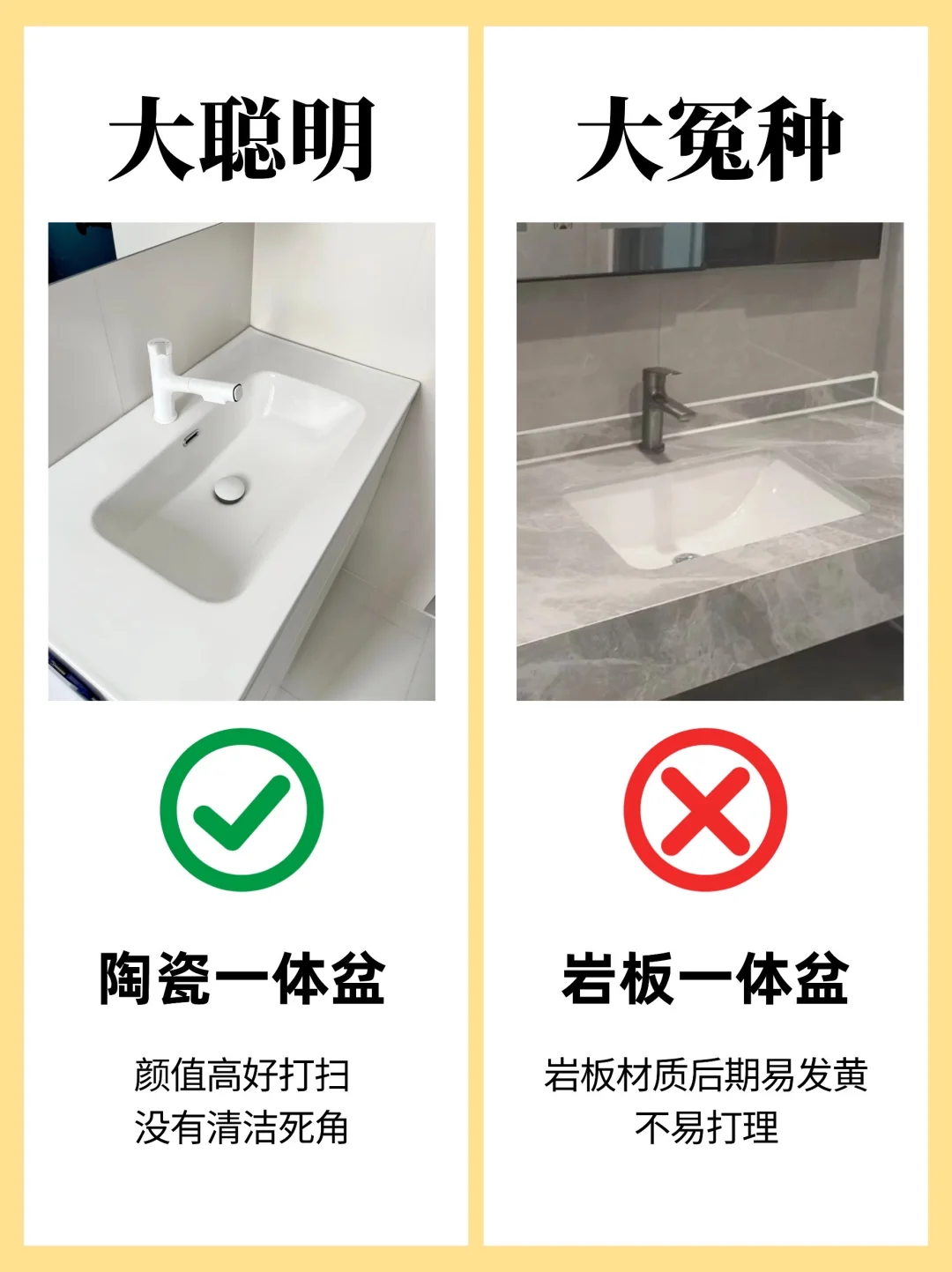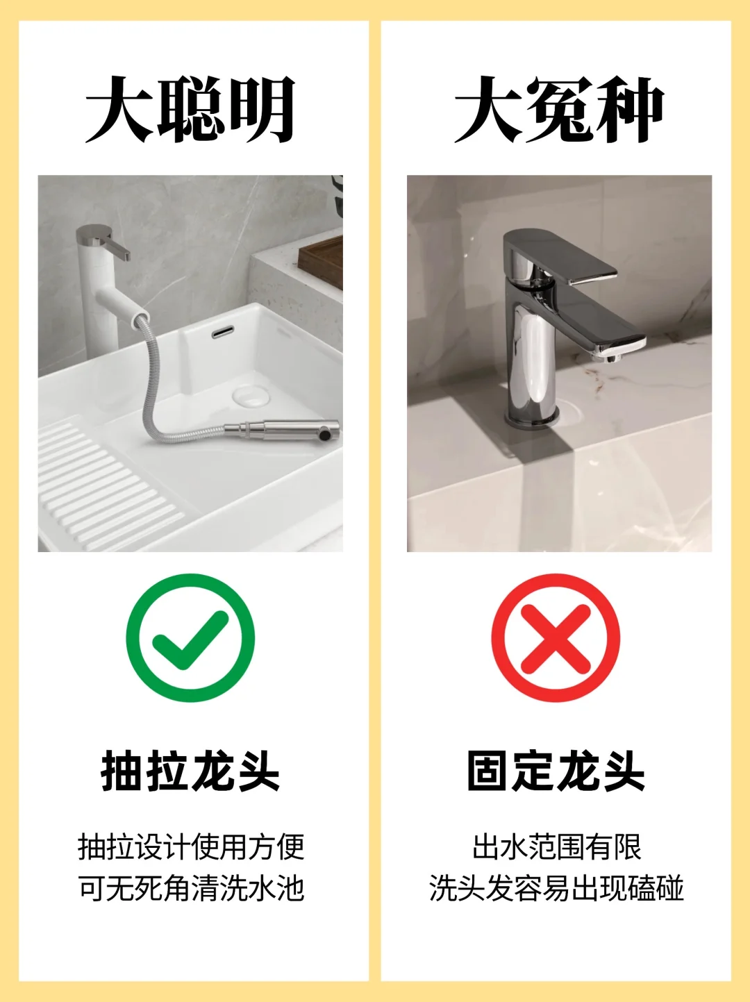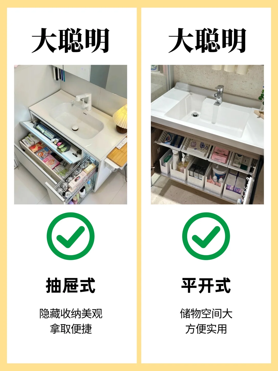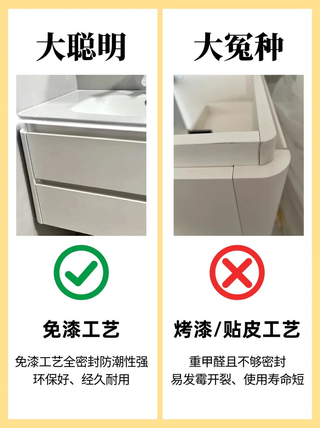 正在装修,准备买浴室柜的朋友,一篇教会大家怎么选浴室柜!10个选购重点不翻车~ 1️⃣抽拉龙头:抽拉设计使用方便,可无死角清洗水池 2️⃣镜柜设计 :储物空间大,方便收纳,可预留插座供电动牙刷充电 3️⃣智能除雾:冬季温差大镜子易起雾,一键除雾方便使用 4️⃣抽屉式/平开式:隐藏收纳美观,拿取便捷 5️⃣吊柜式:安装简单颜值高,方便清洁卫生 6️⃣陶瓷一体盆:颜值高好打扫,没有清洁死角 7️⃣免漆工艺:免漆工艺全密封防潮性强,环保好、经久耐用 8️⃣柜体实木基层:强度好不易变型,防潮性好且更环保 9️⃣优质五金配件:不锈钢一定要304,且带阻尼缓冲的 🔟墙排水:墙排水美观,打扫卫生更方便 ✅以及浴室柜选购注意事项 ⭕️“多层实木”≠ 全实木 ⭕️假岩板拿钥匙刮就花,真岩板刮不动 ⭕️五金配件建议确认发货清单开箱验货、拍照保留证据 ⭕️不锈钢一体拉丝的龙头才耐用 ⭕️壁挂式浴室柜不适合卫生间非承重墙or轻质墙,时间久了容易脱落、开裂 ⭕️避雷柜子内部高度不到25cm的抽屉,连纸巾盒都塞不下 ⭕️台盆+龙头成套测距买,别图便宜分开配 ⭕️镜柜别选太深(≤12cm),只照镜距离控制在30-50cm最合适 ⭕️台盆深度不低于20公分,洗脸水花才不外溅 ⭕️镜柜距台盆高度35cm以上,深度13cm以内,这样洗头漱口才不用担心碰头 ⭕️安装浴室柜切记要注意门套距离! ⭕️防霉密封胶自己提前买几管质量好的防霉的