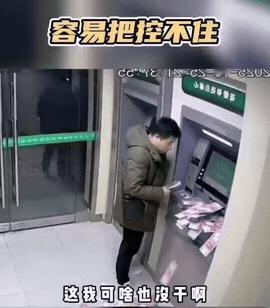 这取款机哗哗吐钱,给小伙整懵了! 小伙去取钱, 拿走了自己的那部分钱, 然后没想到这时取款机哗哗的吐钱, 男子手足无措的看了看监控, 但是取款机不停的吐钱, 钱喷了一地, 这男子肯定是在做心理斗争, 这是拿还是不拿? 如果只拿自己的那部分钱走, 这多吐出来的钱, 怎么处理啊?