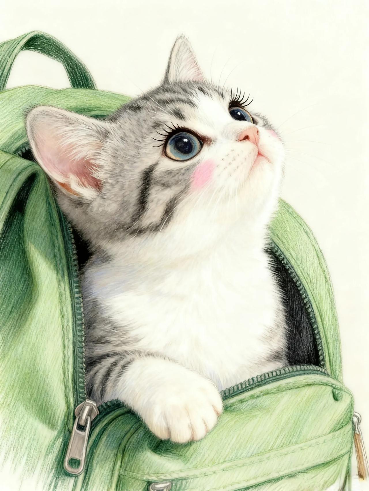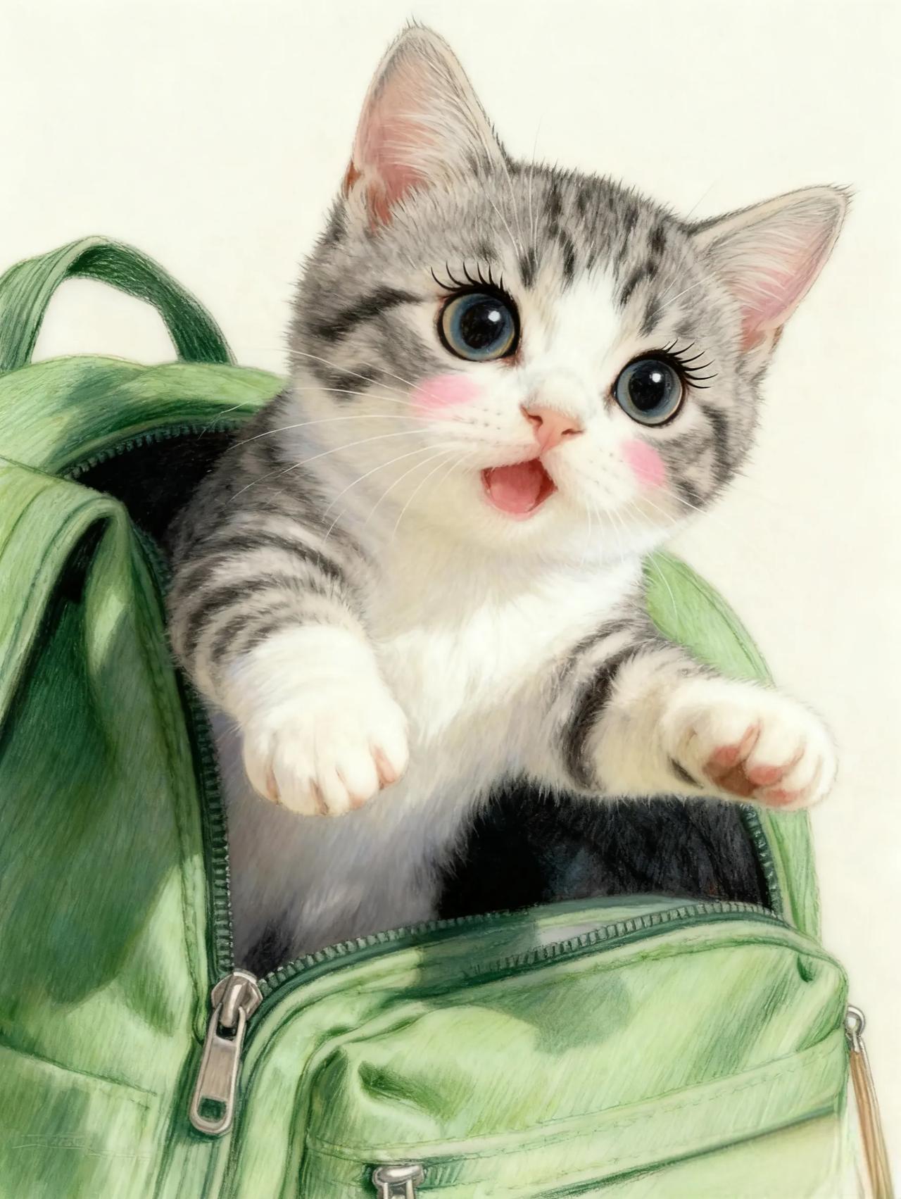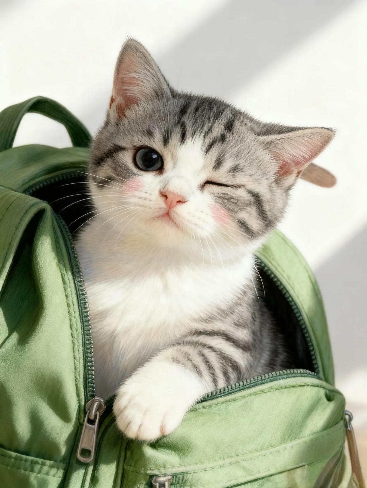 谁能拒绝这只躲在书包里的软萌小奶猫呢?每一个表情都像在演我的心动瞬间,治愈感直接拉满。